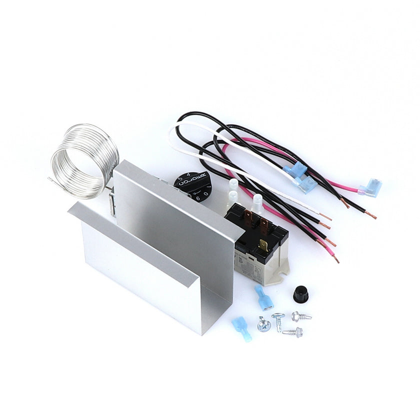 TEMP CONTROL KIT 077B6827 RETROFIT TPP-119 INCLUDES: 800366 TEMPERATURE CONTROL, 2)802179 BLUE CONNECTORS, 800182 COIL RELAY, WIRES 12"(2 BLACK/1 PINK/1 WHITE), 2)830566 SCREW FOR RELAY, 1)811210 GROMMET, 928148 INSTRUCTION SHEET