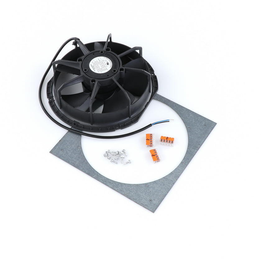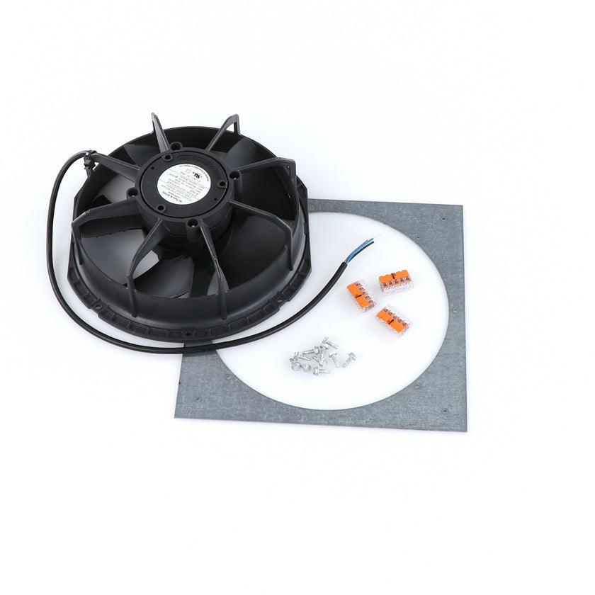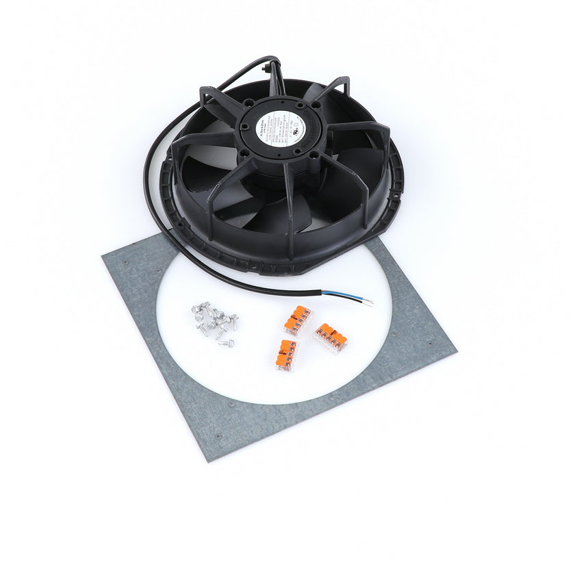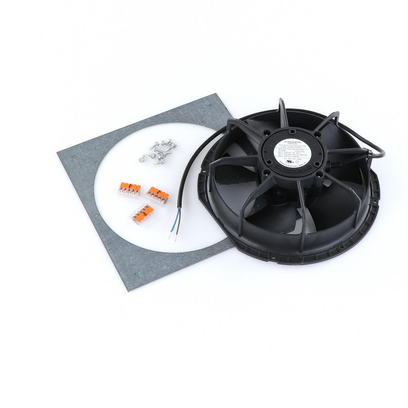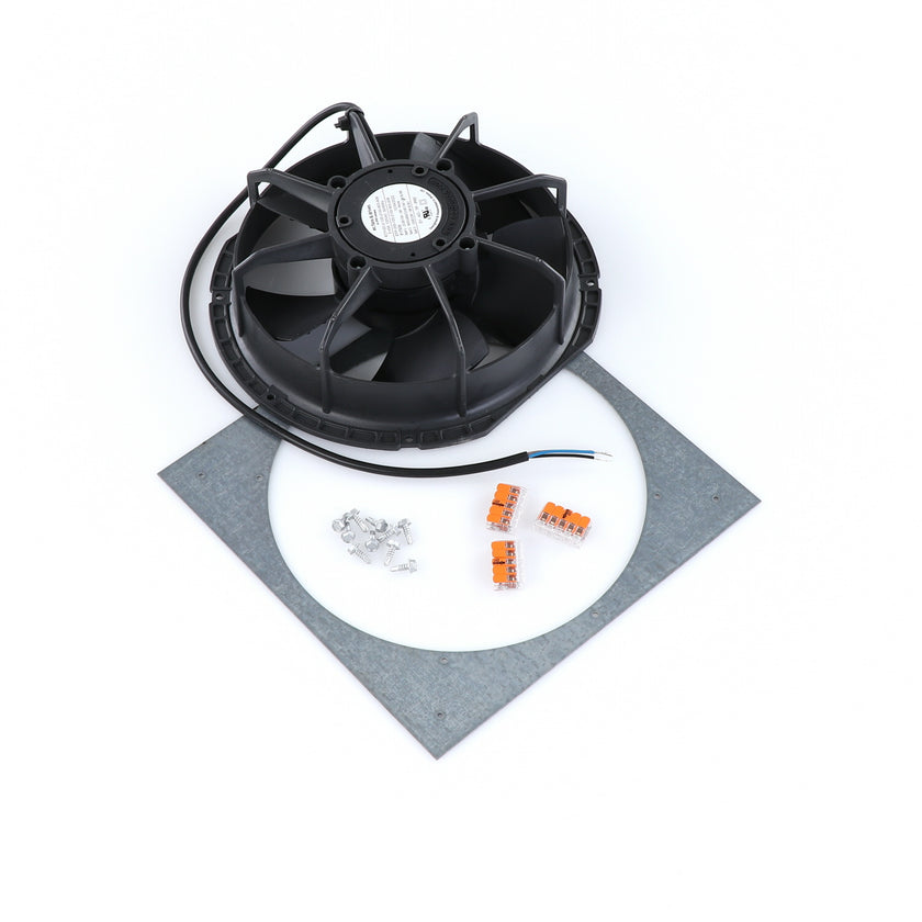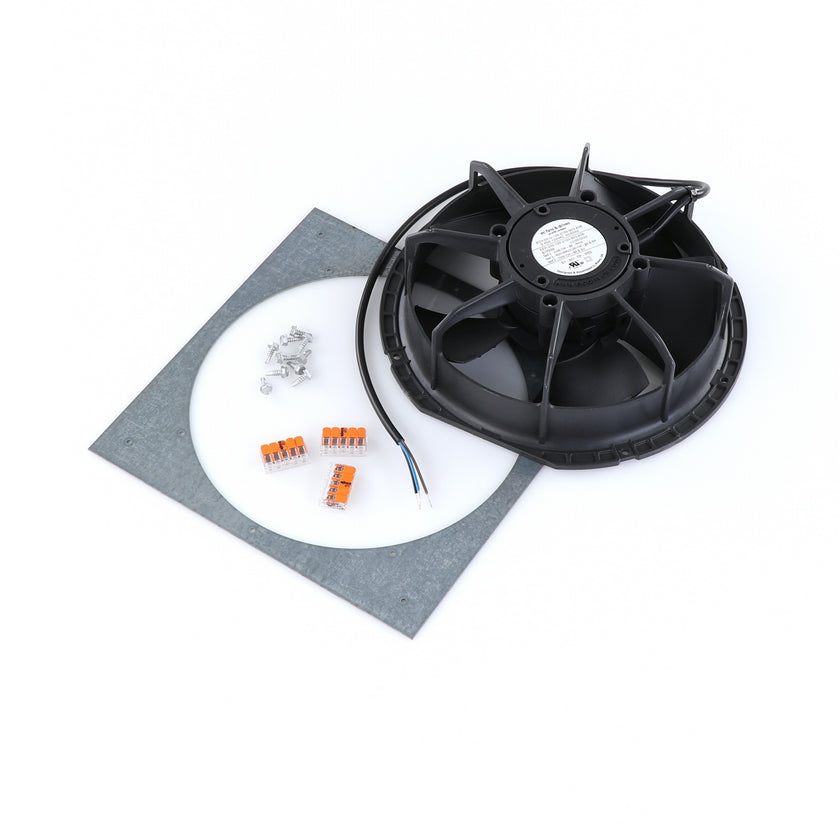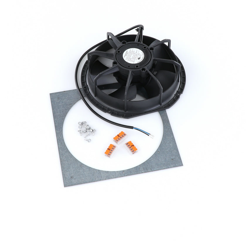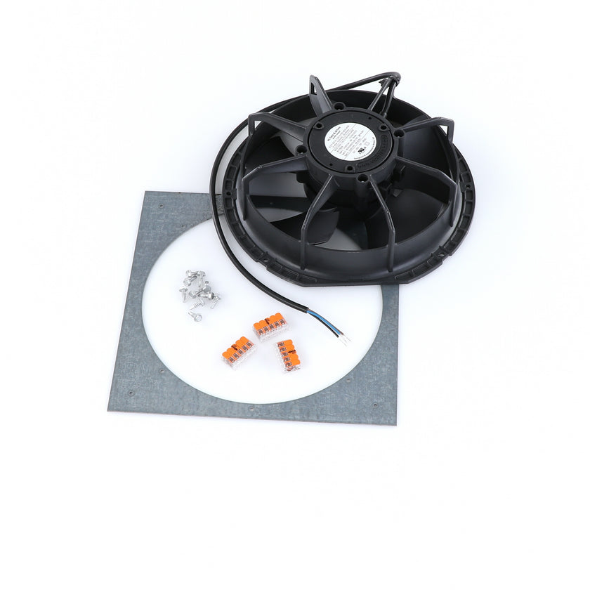 FAN MOTOR KIT INCLUDES: 817939 FAN MOTOR, 840787 MOUNTING PLATE, 3) 202747 5-WAY LEVER CONNECTORS, 10) 830592 SCREWS, AND 817938 INSTRUCTIONS