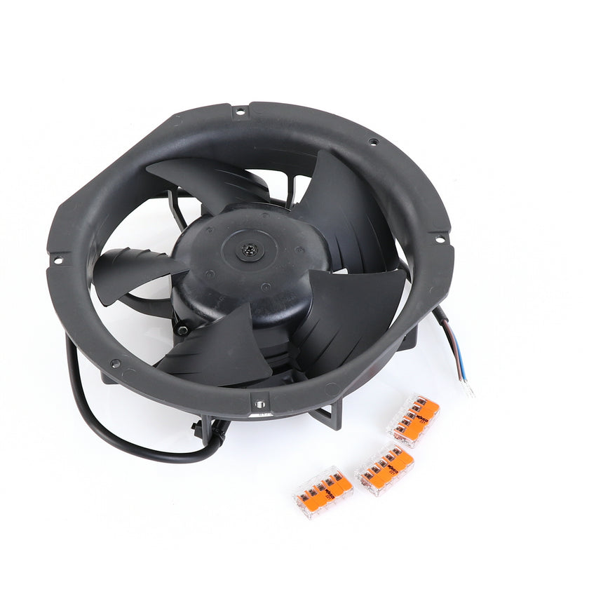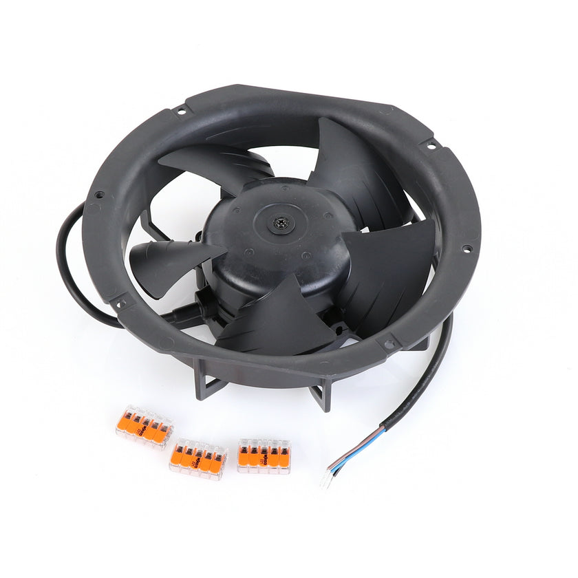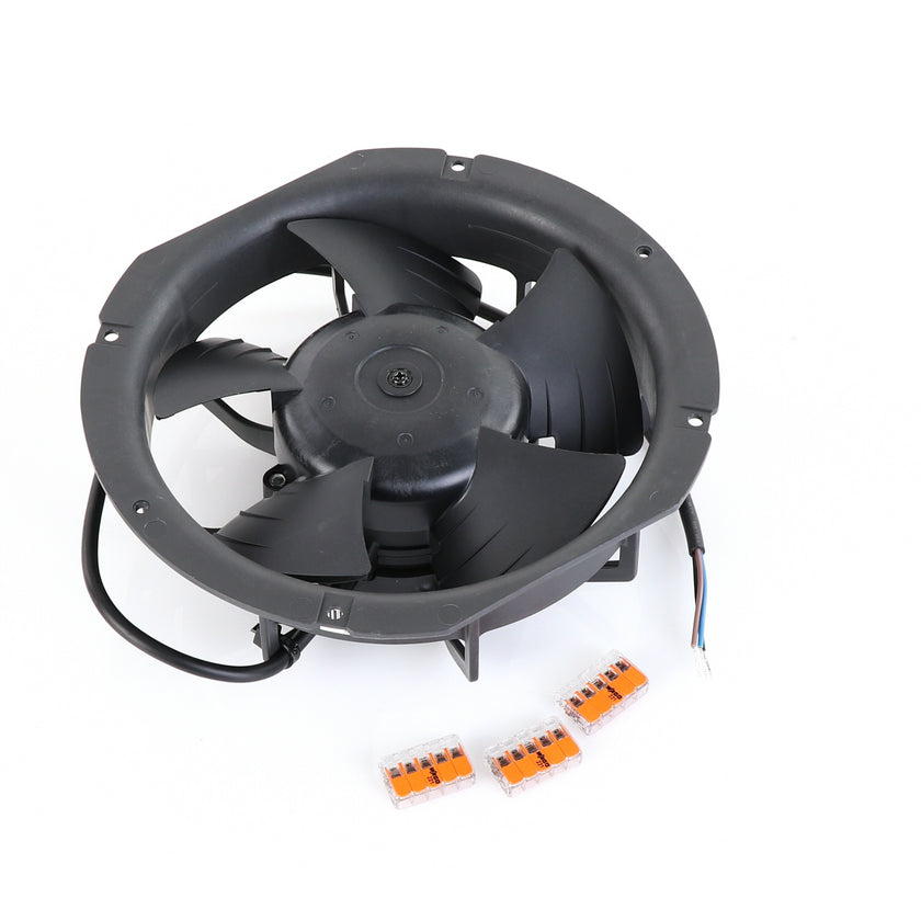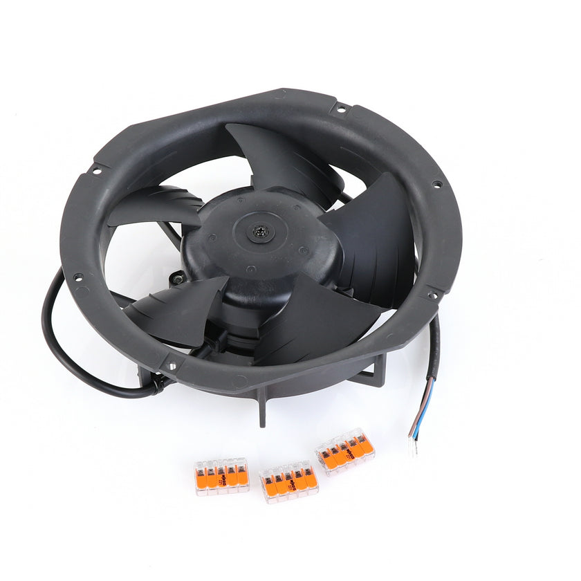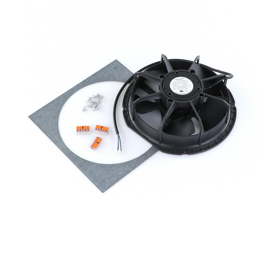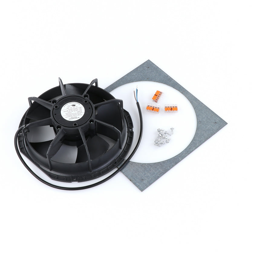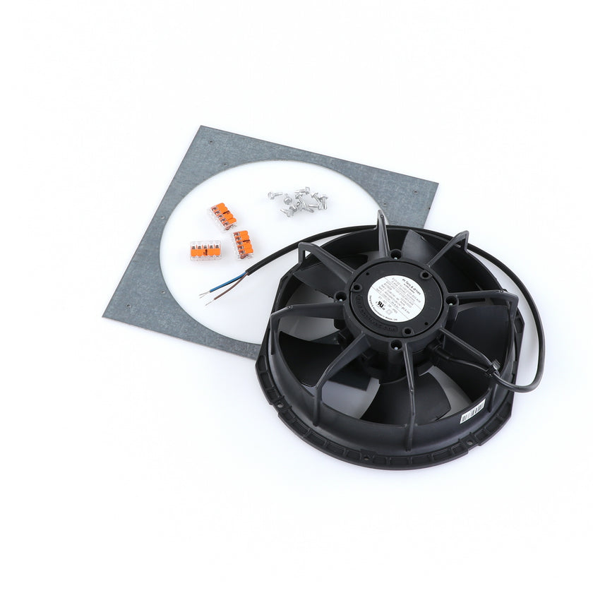 FAN MOTOR KIT INCLUDES: 817939 FAN MOTOR, 840787 MOUNTING PLATE, 3) 202747 5-WAY LEVER CONNECTORS, 10) 830592 SCREWS, AND 817938 INSTRUCTIONS