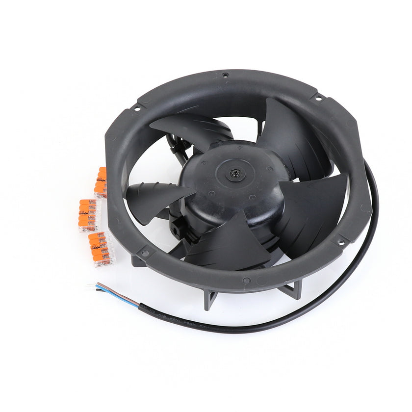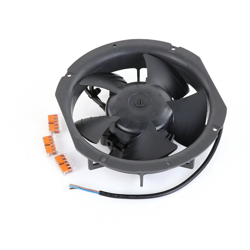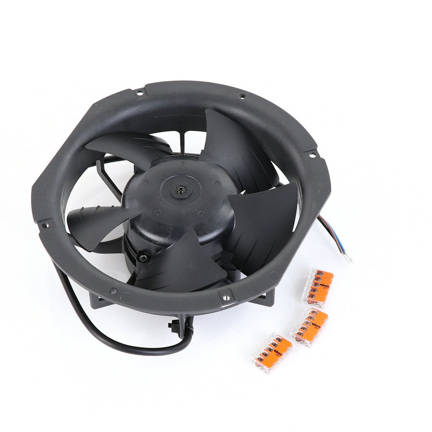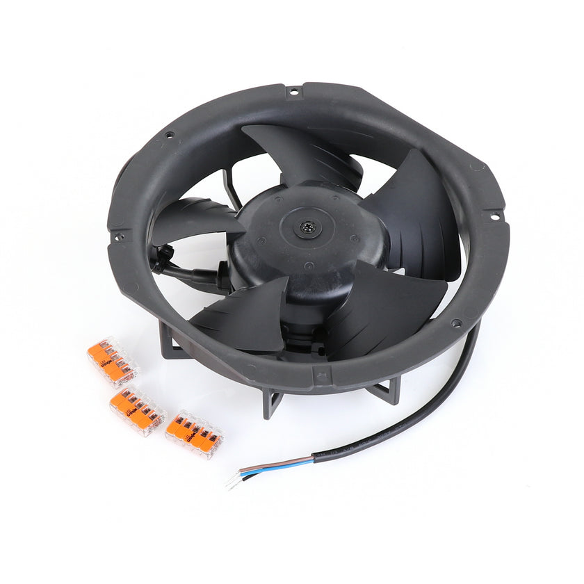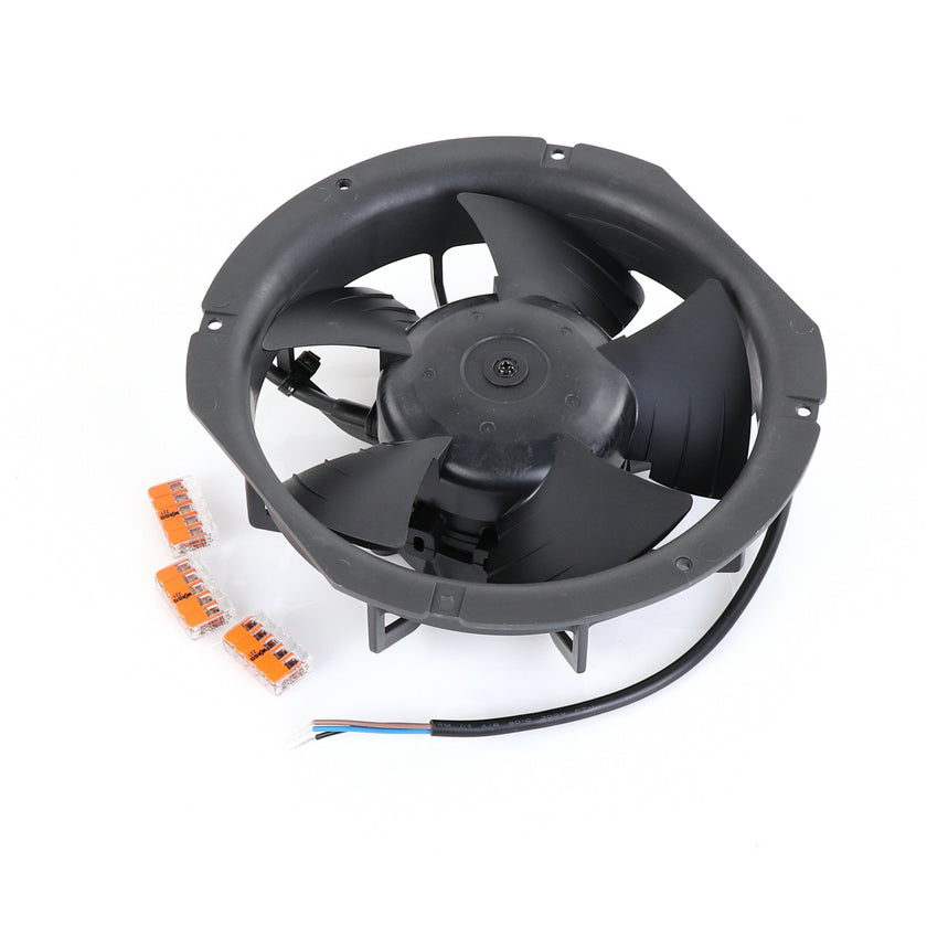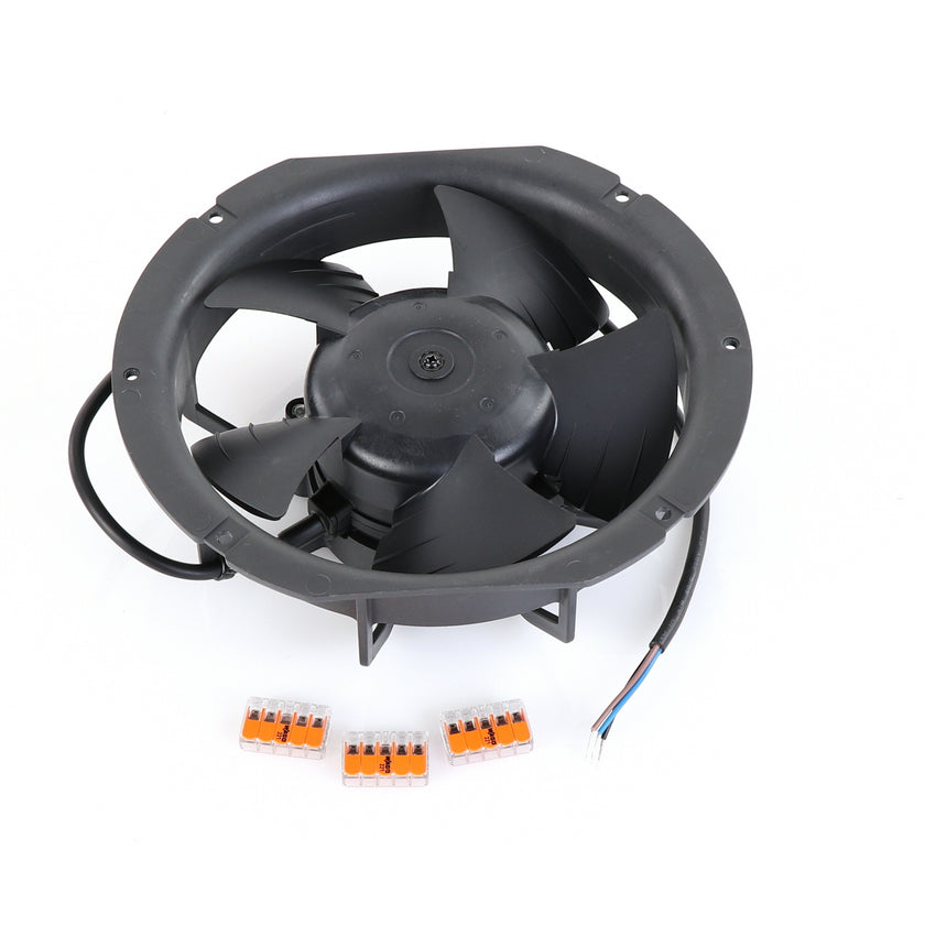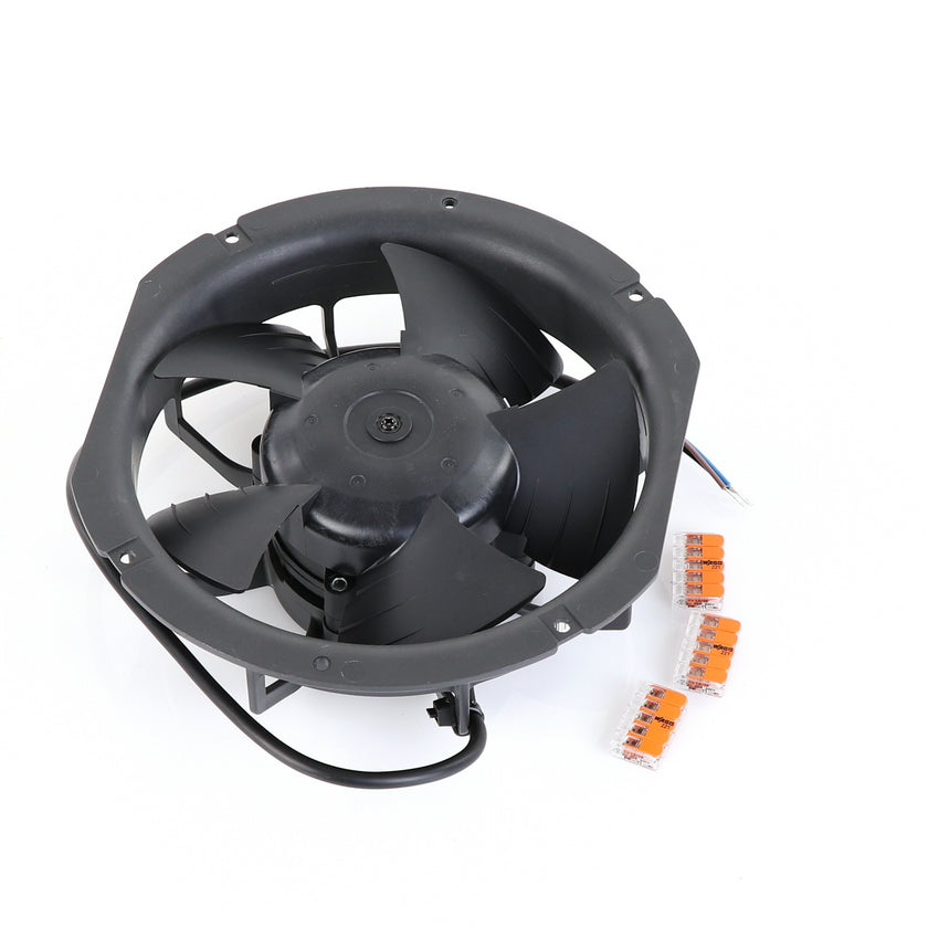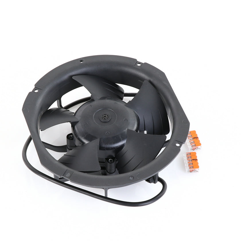 FAN MOTOR KIT INCLUDES: 817939 FAN MOTOR, 840787 MOUNTING PLATE, 3) 202747 5-WAY LEVER CONNECTORS, 10) 830592 SCREWS, AND 817938 INSTRUCTIONS