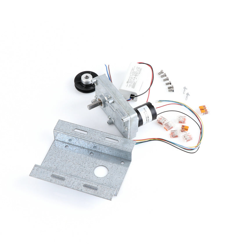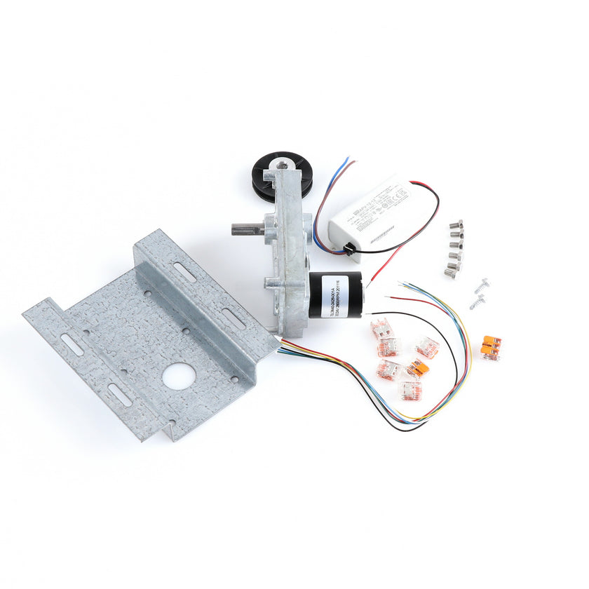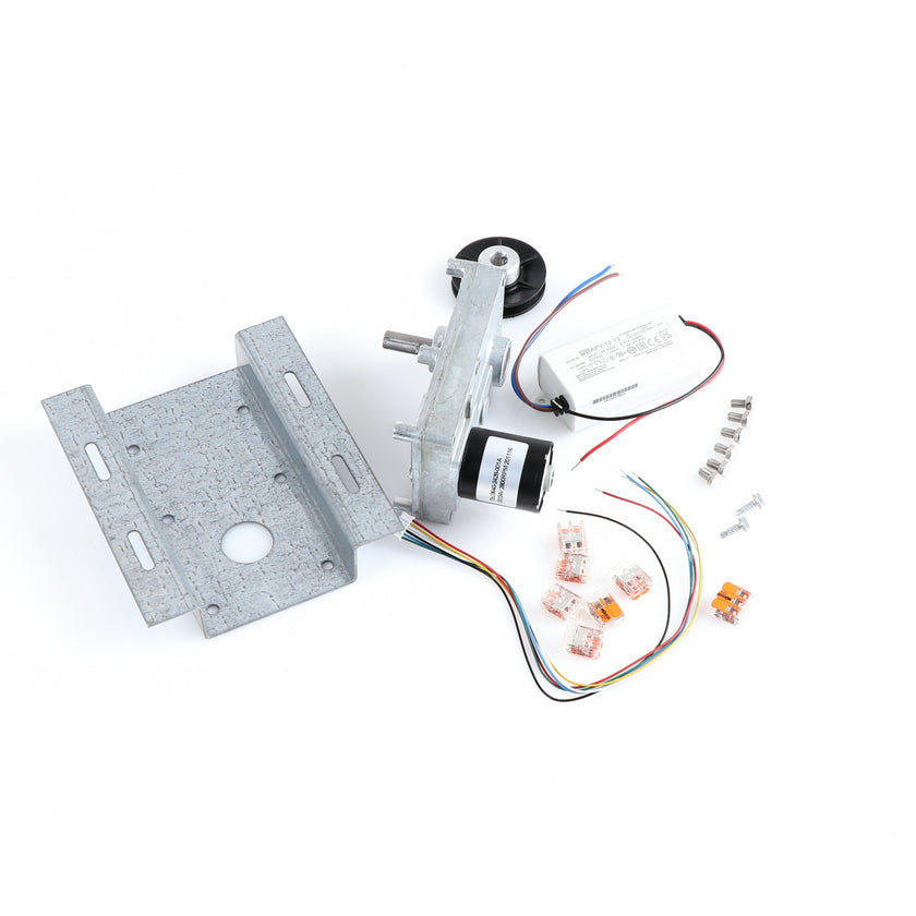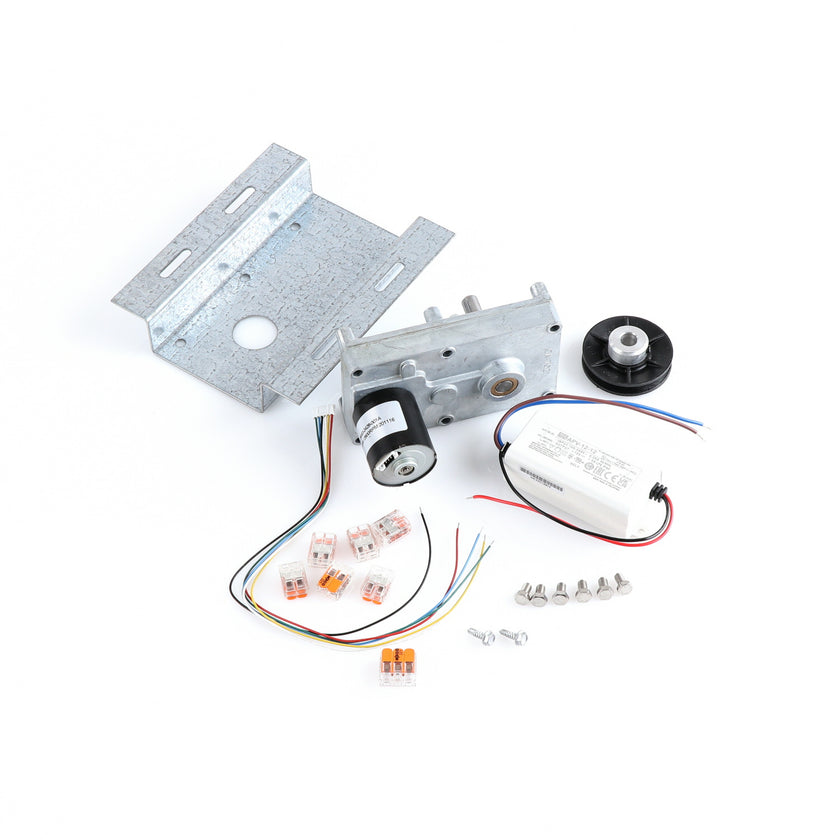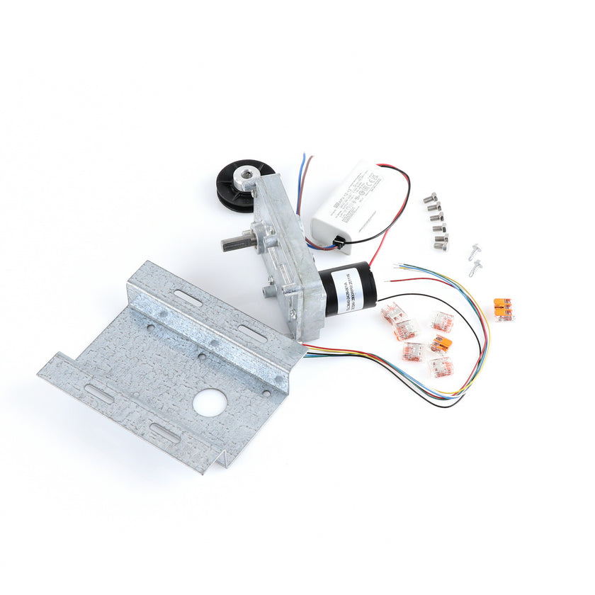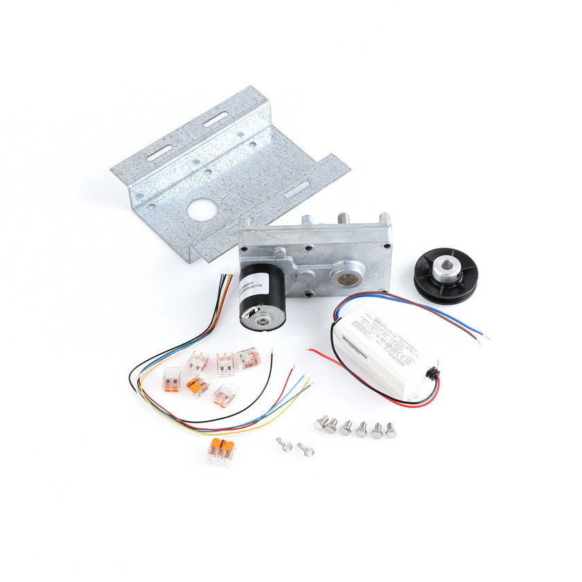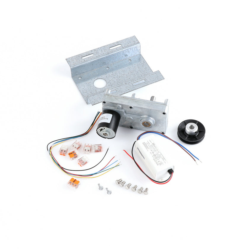 MOTOR KIT G4SM-23-RGS INCLUDES: 837253 MOTOR, 837252 BRACKET, 837254 WIRE HARNESS, 837255 PULLY, 6) 837271 SCREW, 977382 DRIVER, 2) 830592 SCREWS, 6) 200962 2WAY LEVER CONNECTORS, 995655 3WAY CONNECTOR, 802149 CABLE TIE, AND 845509 INSTRUCTIONS