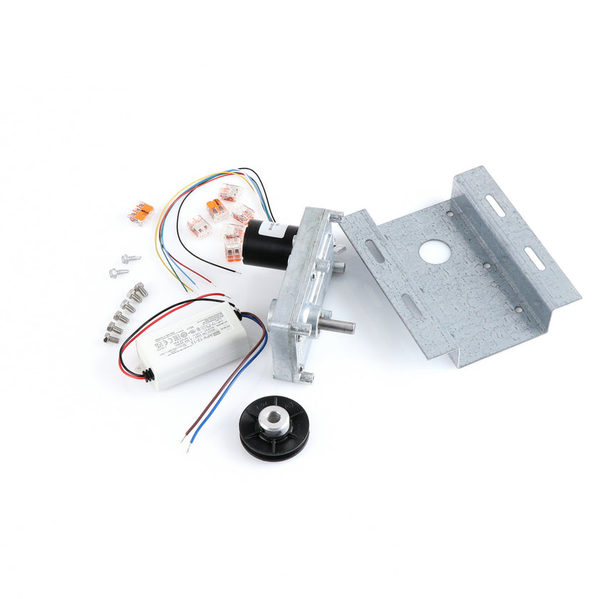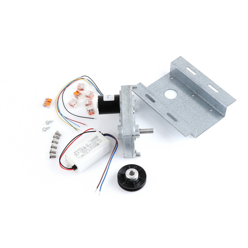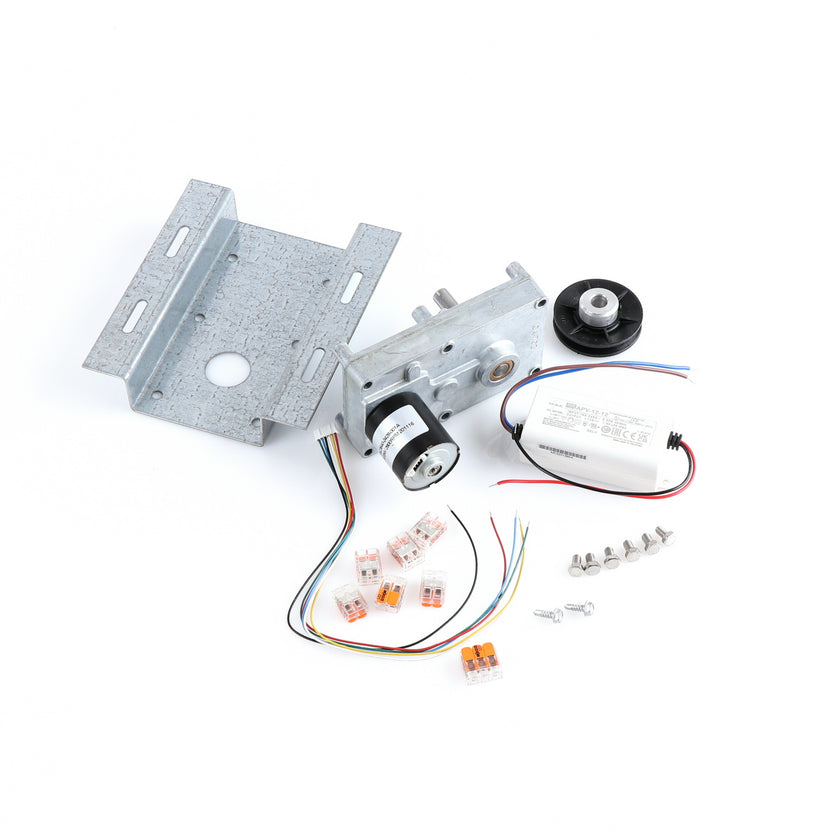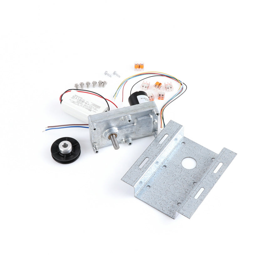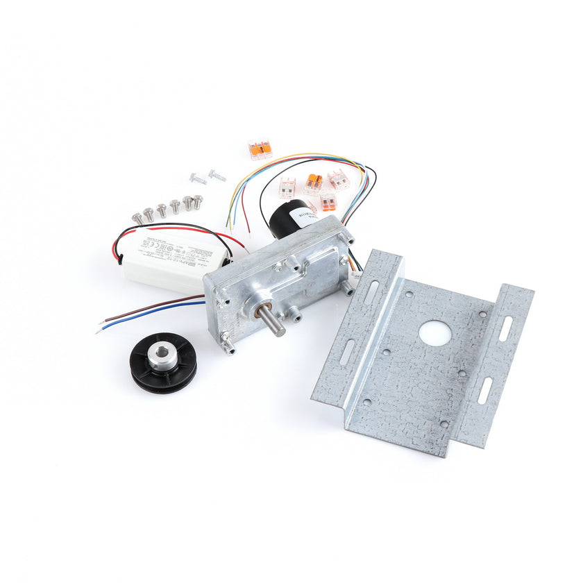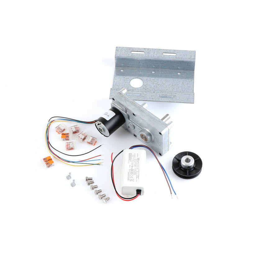 MOTOR KIT G4SM-23-RGS INCLUDES: 837253 MOTOR, 837252 BRACKET, 837254 WIRE HARNESS, 837255 PULLY, 6) 837271 SCREW, 977382 DRIVER, 2) 830592 SCREWS, 6) 200962 2WAY LEVER CONNECTORS, 995655 3WAY CONNECTOR, 802149 CABLE TIE, AND 845509 INSTRUCTIONS