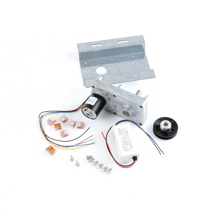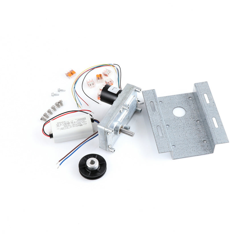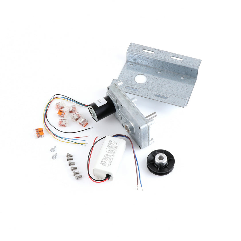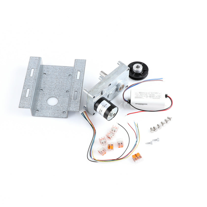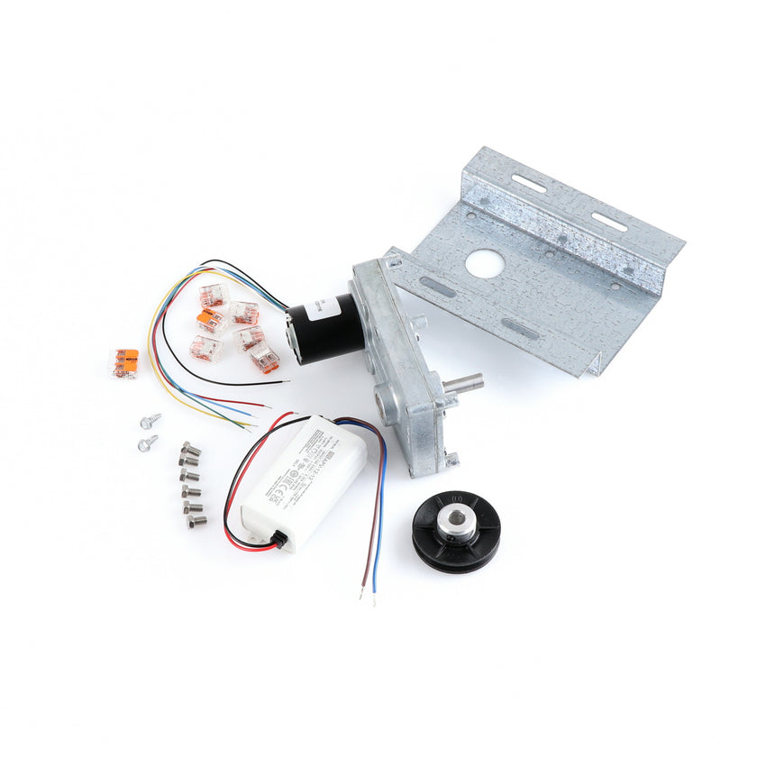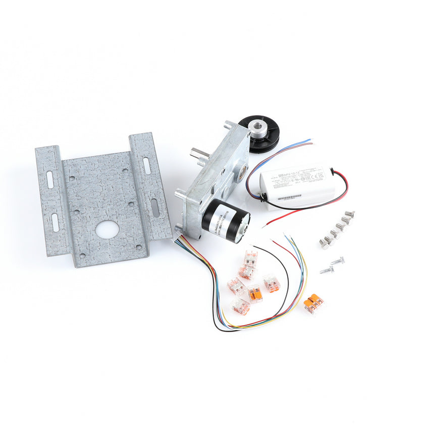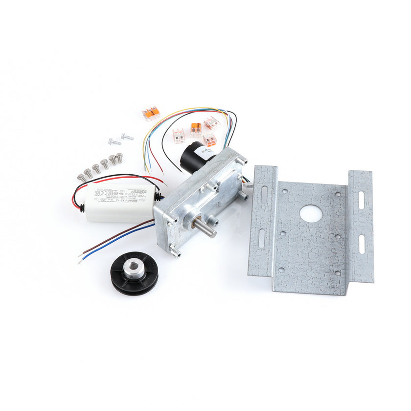 MOTOR KIT G4SM-23-RGS INCLUDES: 837253 MOTOR, 837252 BRACKET, 837254 WIRE HARNESS, 837255 PULLY, 6) 837271 SCREW, 977382 DRIVER, 2) 830592 SCREWS, 6) 200962 2WAY LEVER CONNECTORS, 995655 3WAY CONNECTOR, 802149 CABLE TIE, AND 845509 INSTRUCTIONS