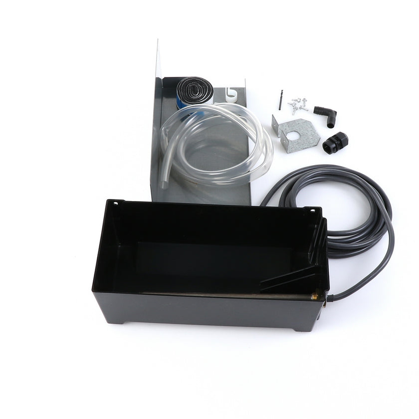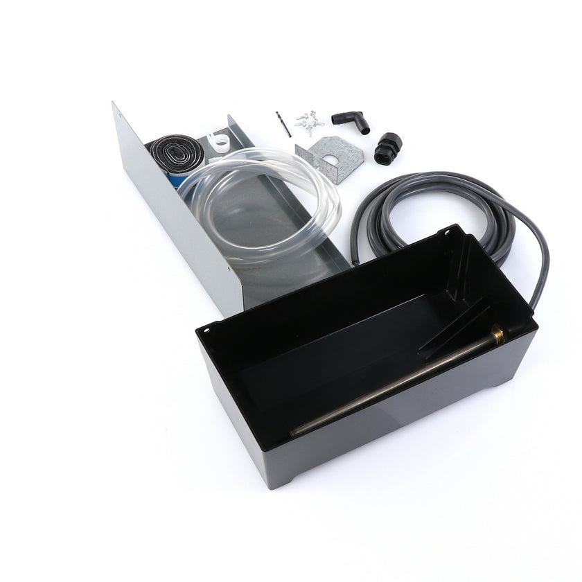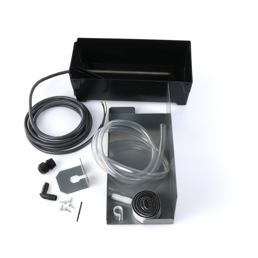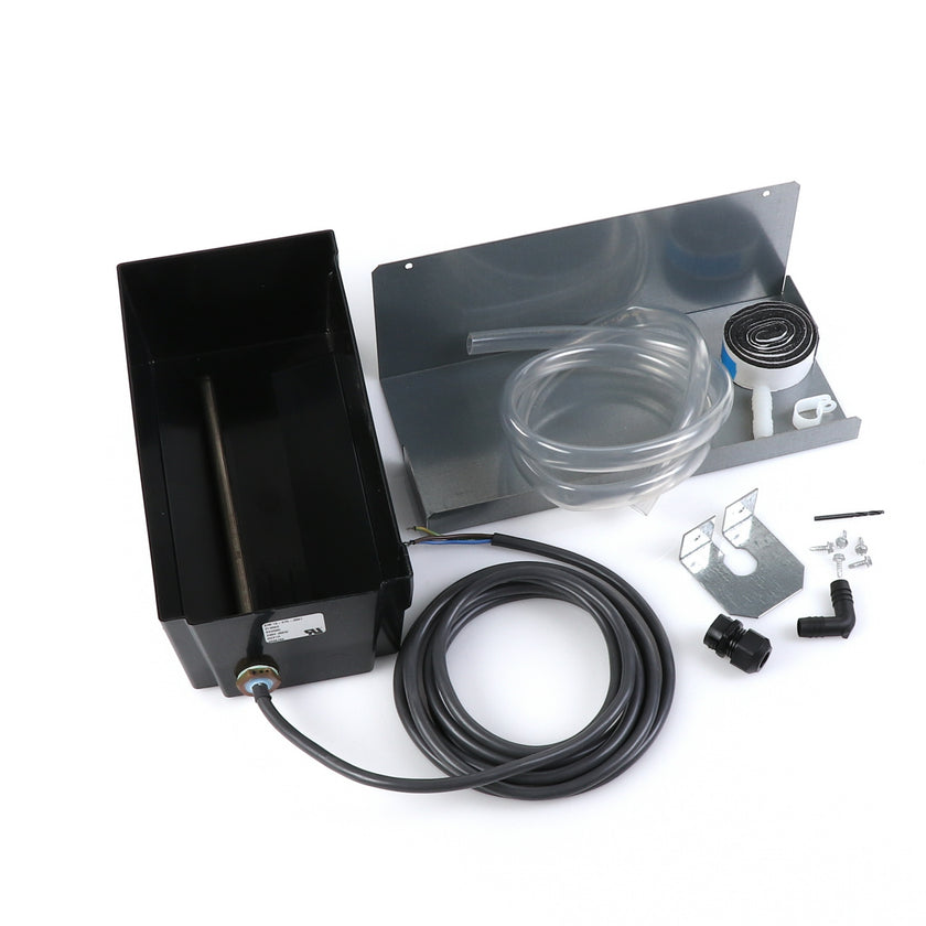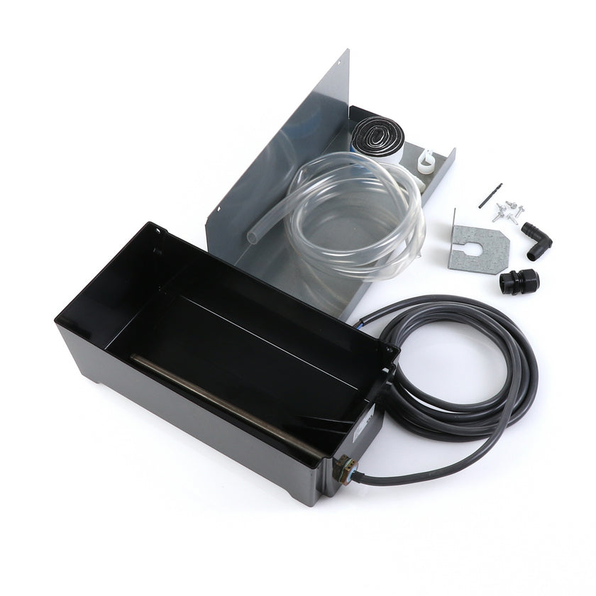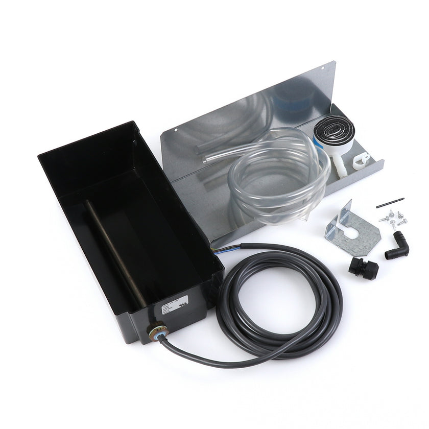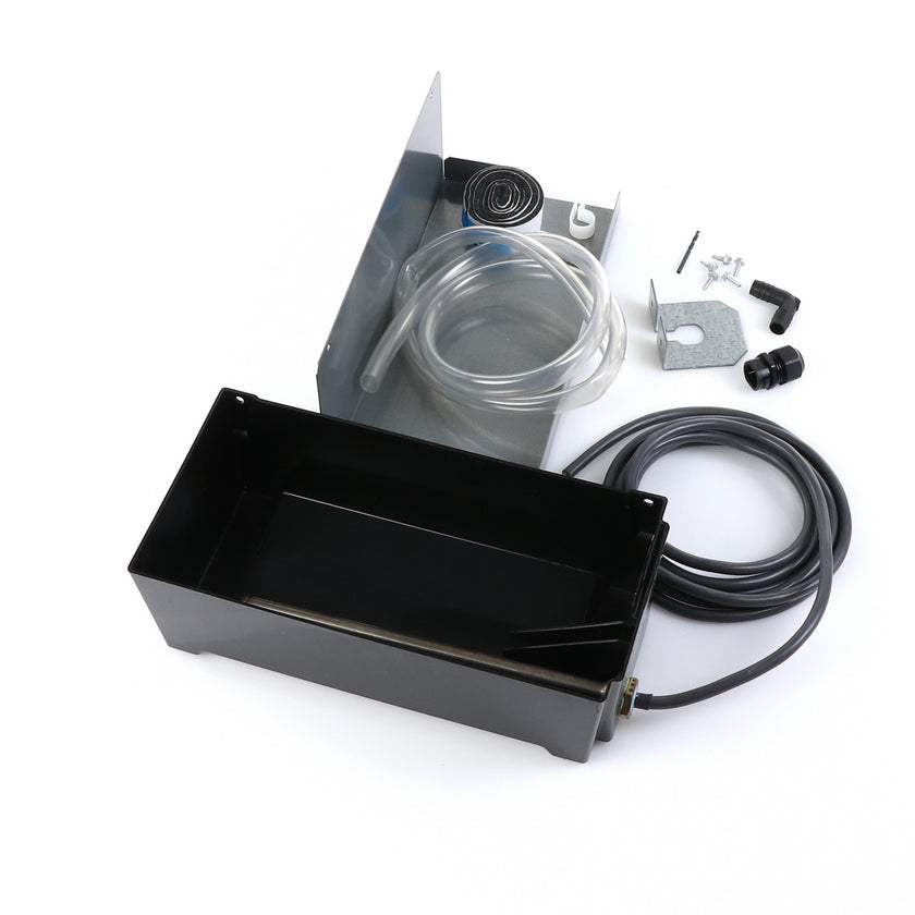 DRAIN PAN HEATED KIT GDM/T-HC 220V INCLUDES: 213003 HEATED PAN, 214508 INSTRUCTION, 1) 802205 CABLE CLAMP, 4) 830592 SCREWS, 1) 213670 BRACKET, 4 FT) 810524 TUBING, 1) 851184 STRAIGHT COUPLER, 1) 830114 ELBOW, 1) 214579 INSTRUCTIONS, 1) 980014 STRAIN RELIEF, 1) 830592 SCREW, 1) 930068 DRILL BIT, 1) 219015 STRAIN RELIEF BRACKET, 36" 820212 FOAM TAPE