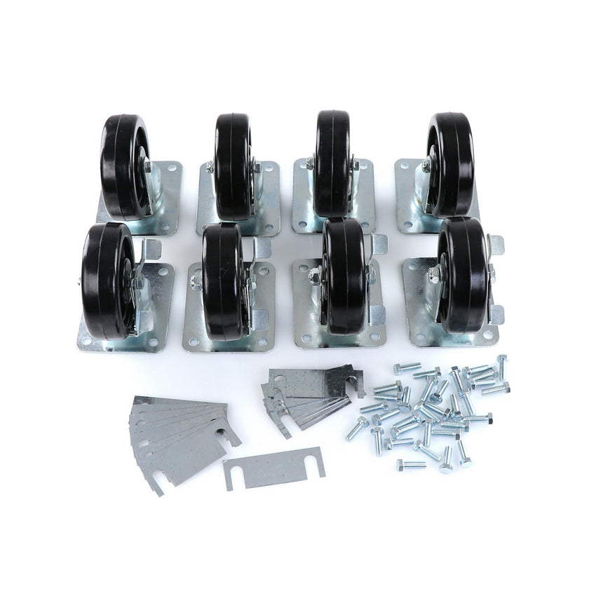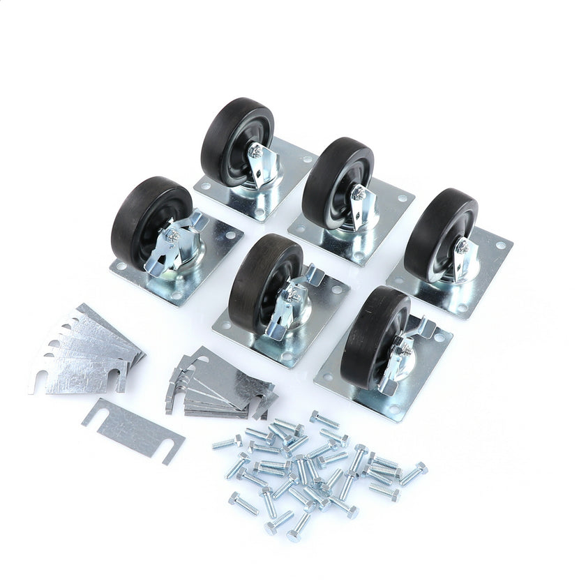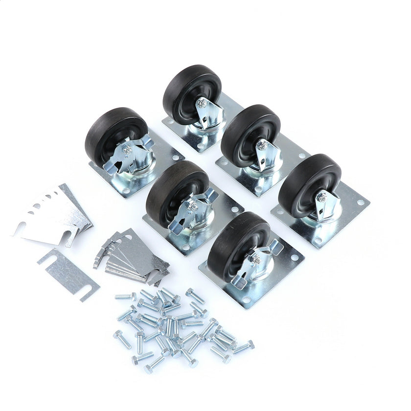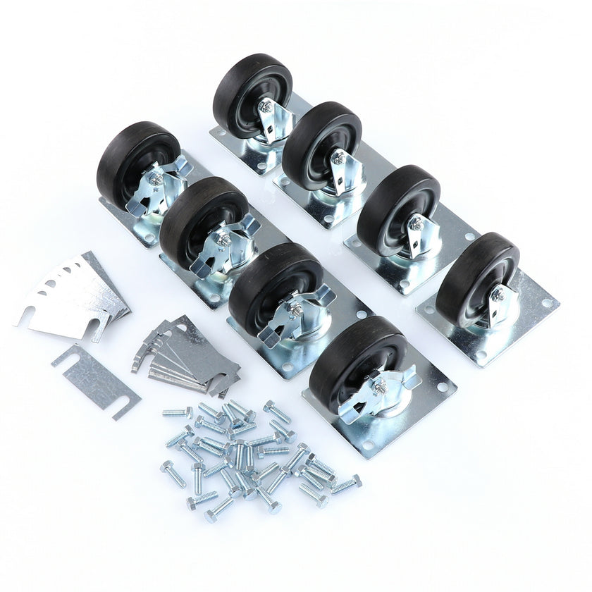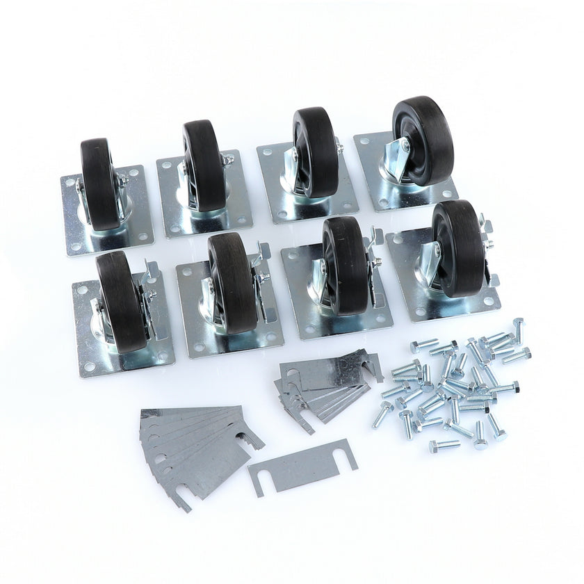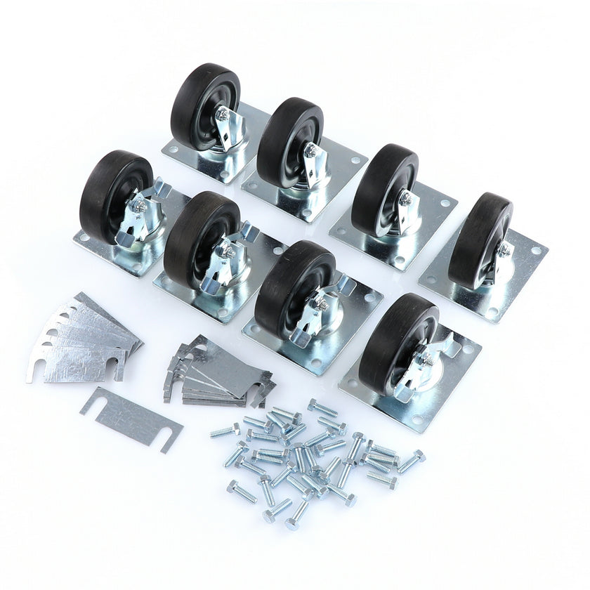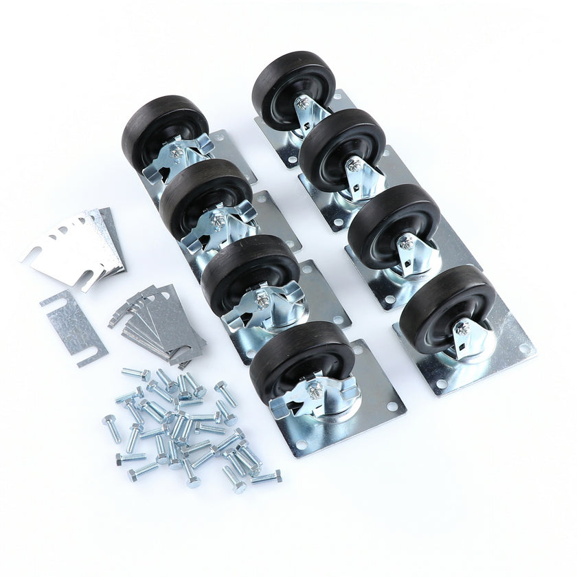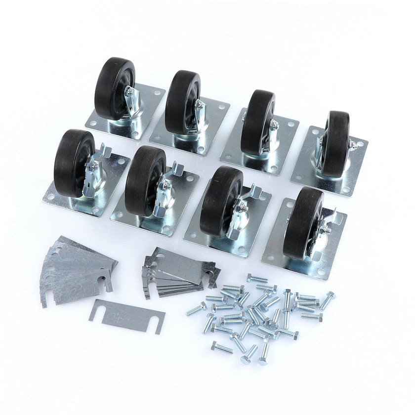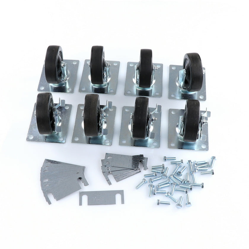 CASTOR KIT SET OF 8-5" SET OF 8 FIVE INCH CASTORS.INCLUDES 4)226567 5" CASTOR W/BRAKE, 4)226566 5" CASTOR W/O BRAKE, 16)226574 SHIM, 32)830539 SCREWS AND 2 CARTON