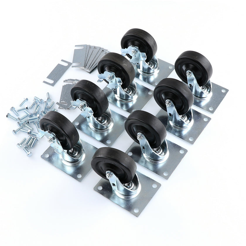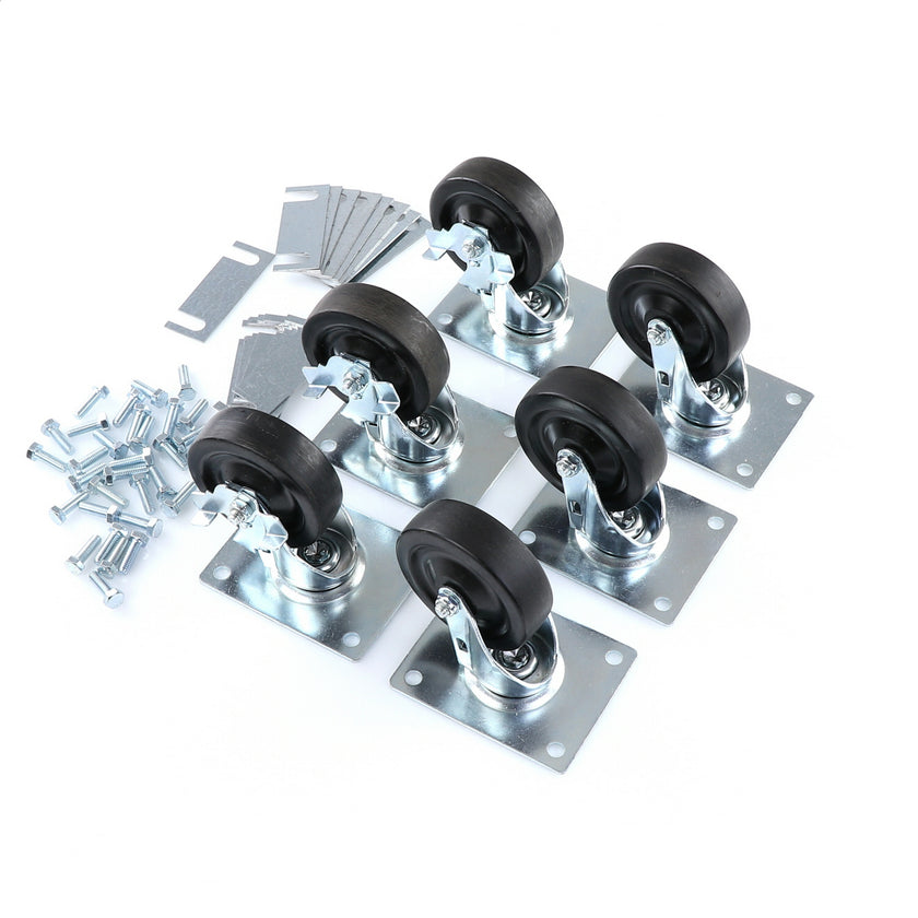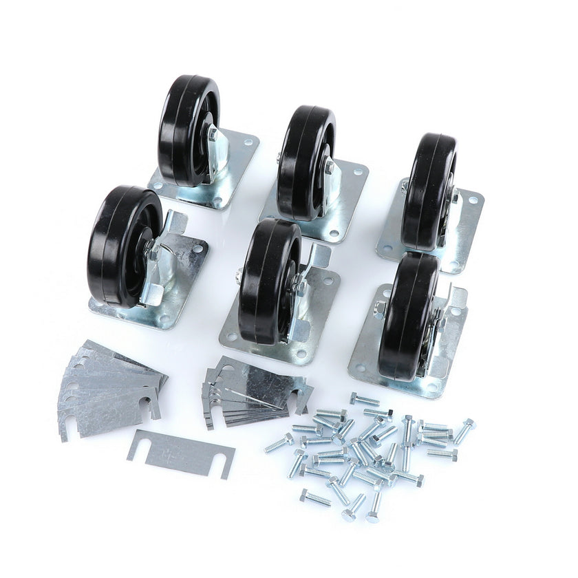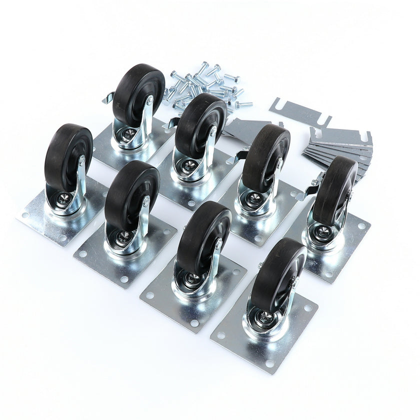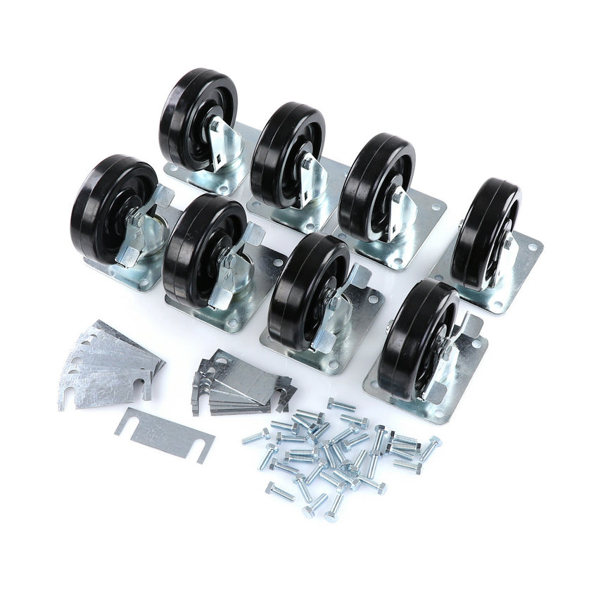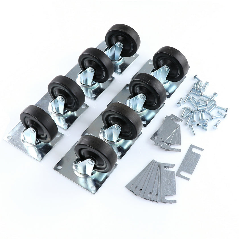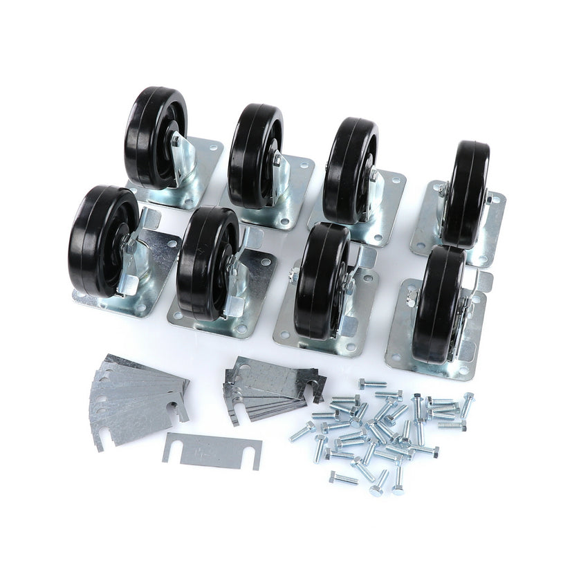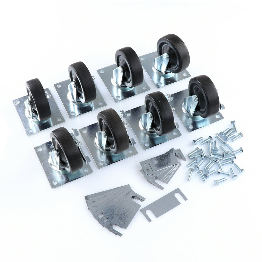 CASTOR KIT SET OF 8-5" SET OF 8 FIVE INCH CASTORS.INCLUDES 4)226567 5" CASTOR W/BRAKE, 4)226566 5" CASTOR W/O BRAKE, 16)226574 SHIM, 32)830539 SCREWS AND 2 CARTON