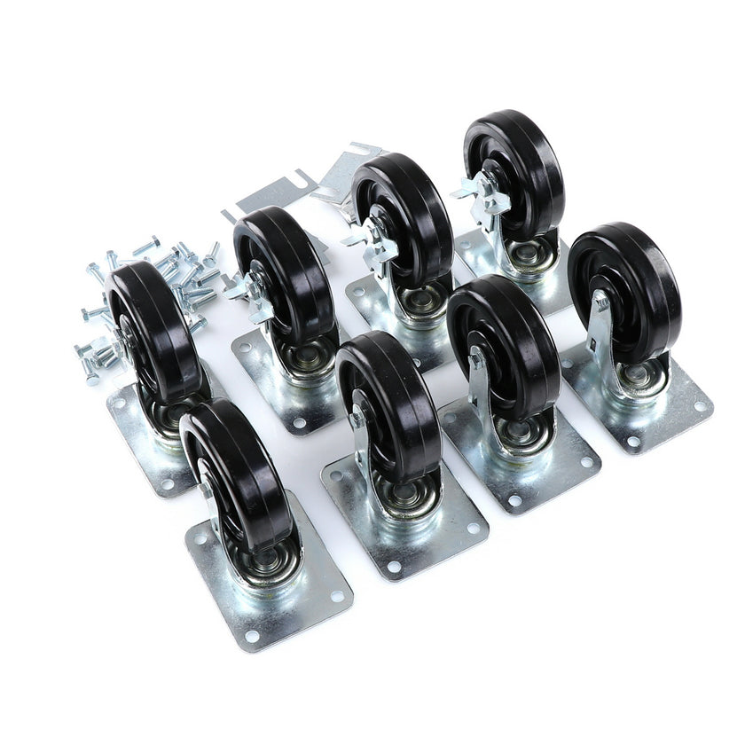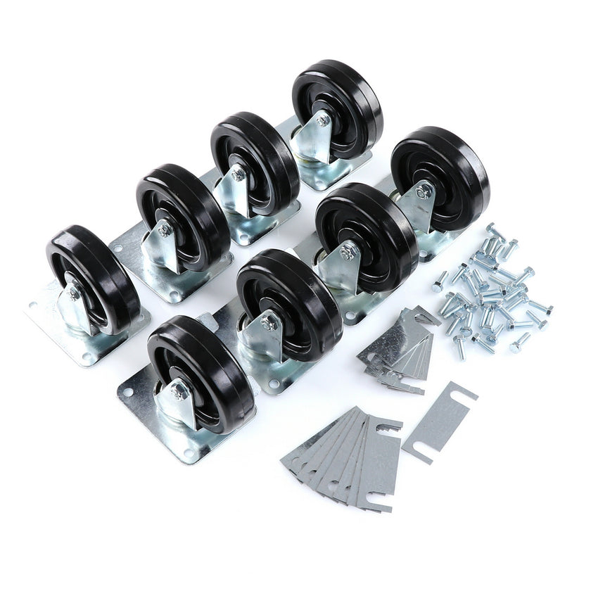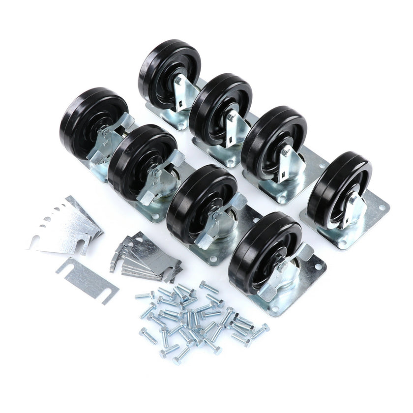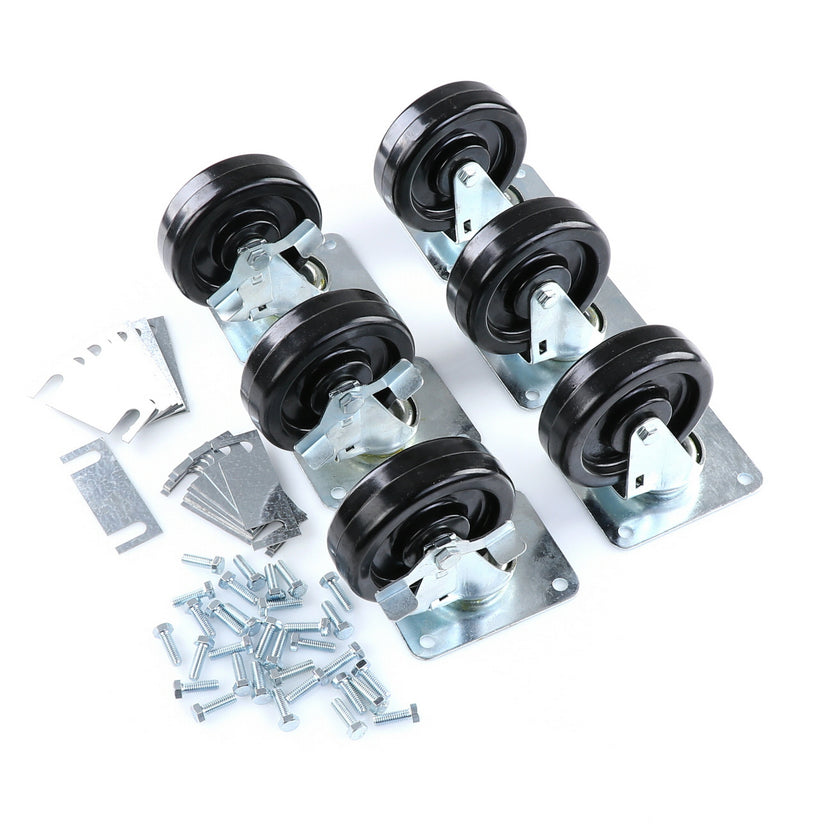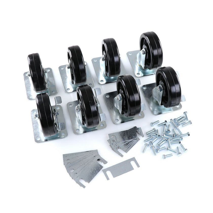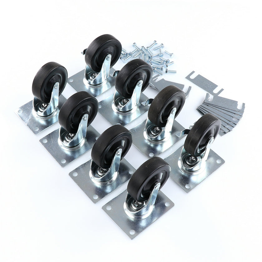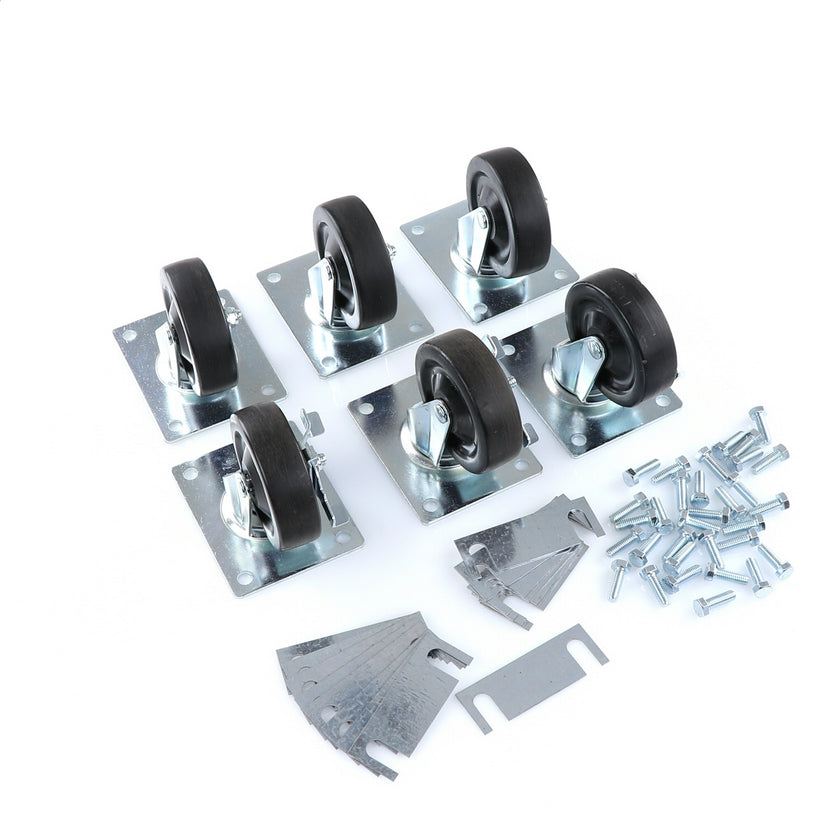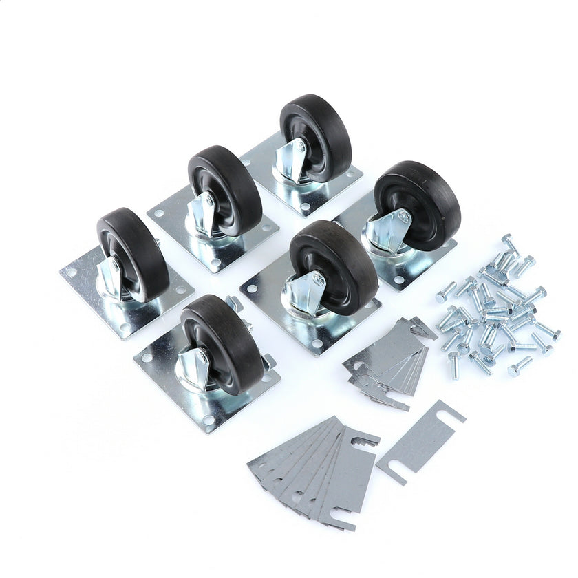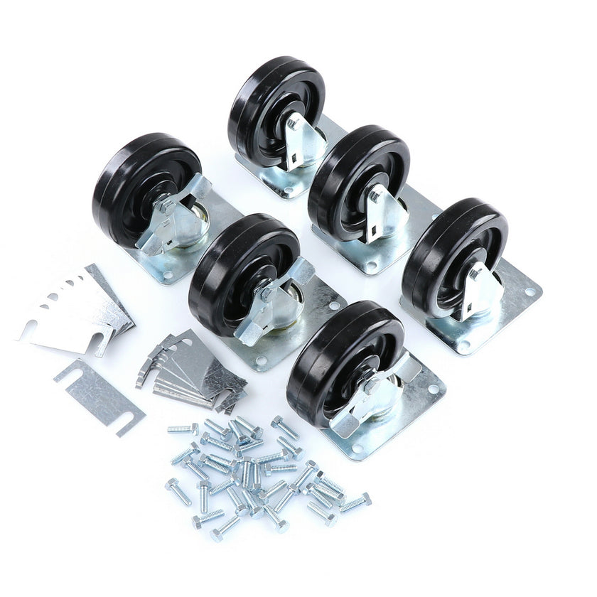 CASTOR KIT SET OF 8-5" SET OF 8 FIVE INCH CASTORS.INCLUDES 4)226567 5" CASTOR W/BRAKE, 4)226566 5" CASTOR W/O BRAKE, 16)226574 SHIM, 32)830539 SCREWS AND 2 CARTON