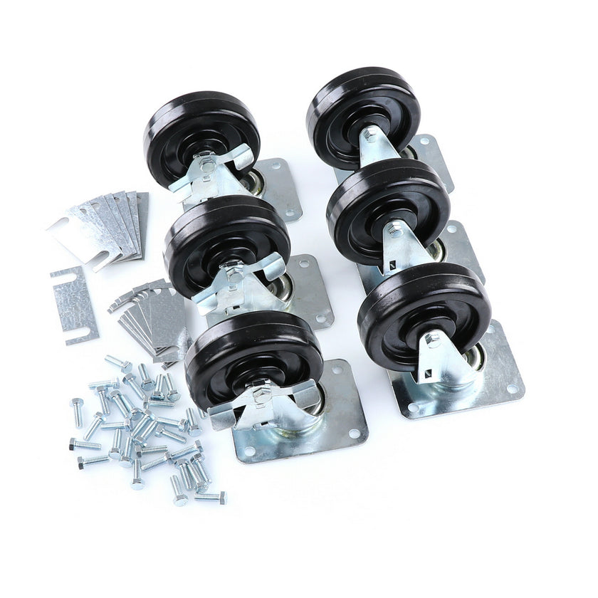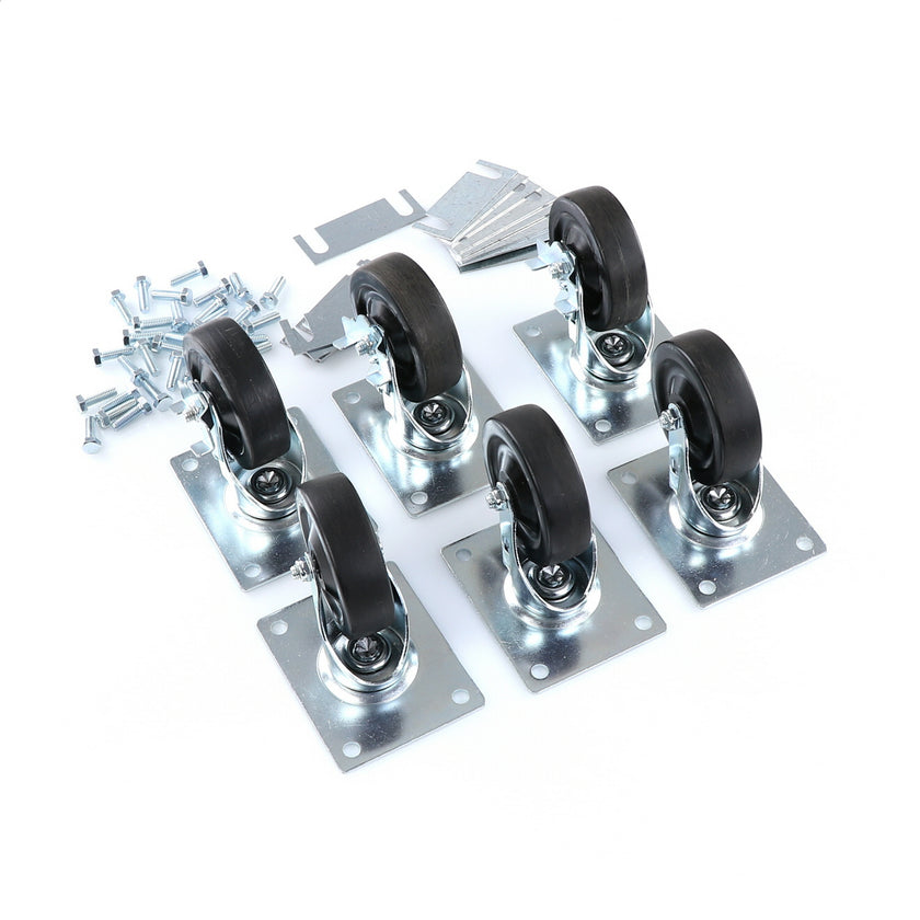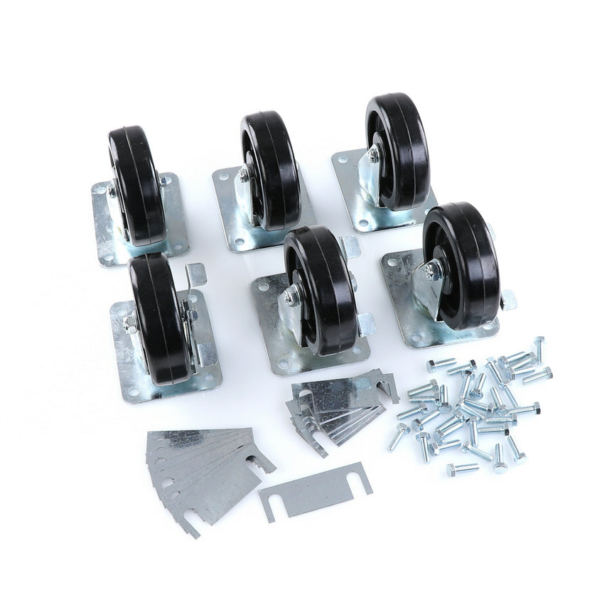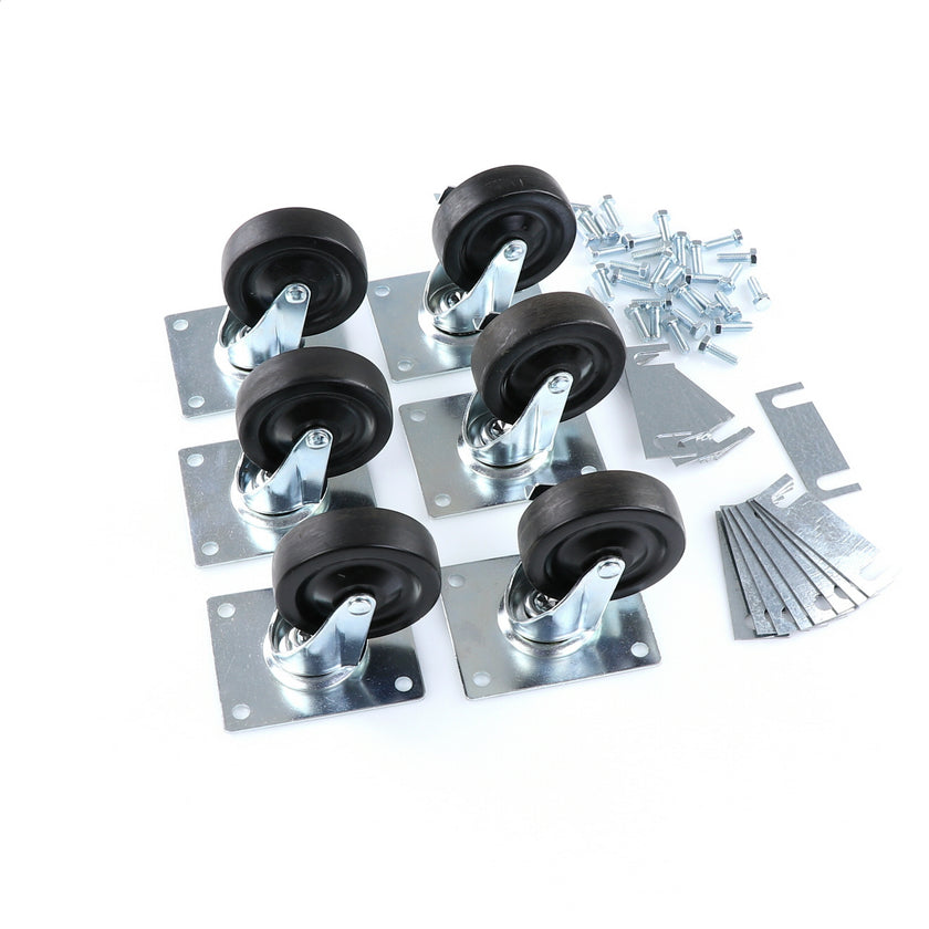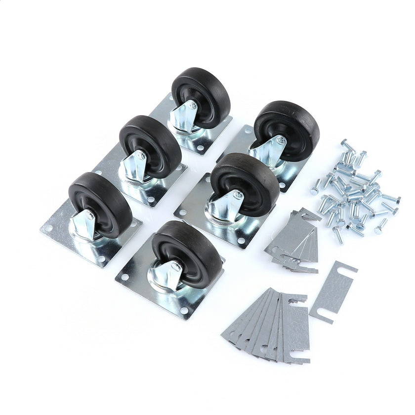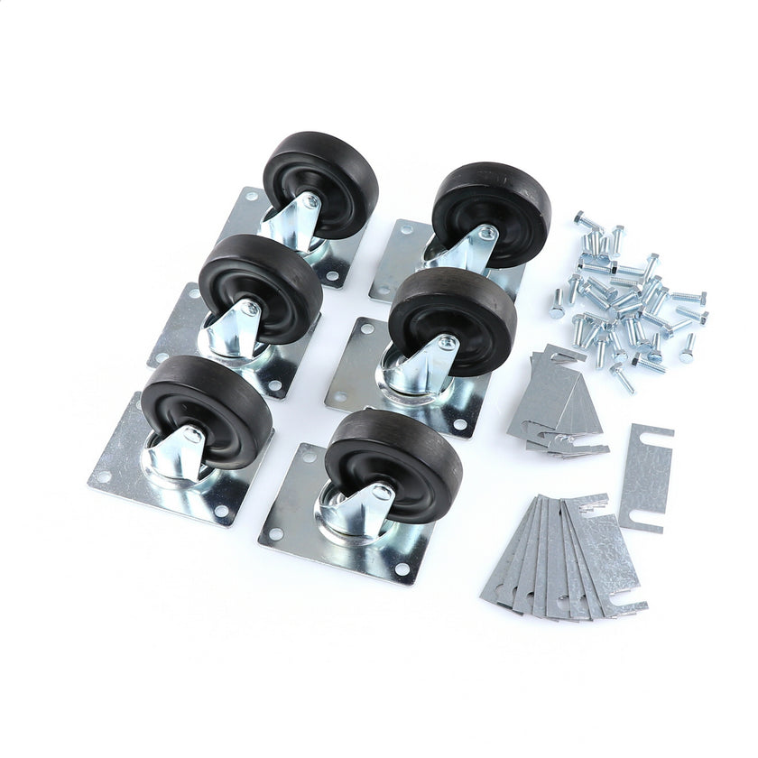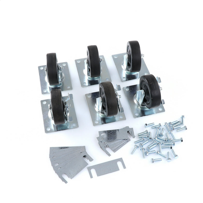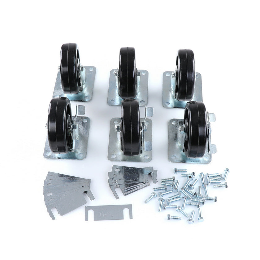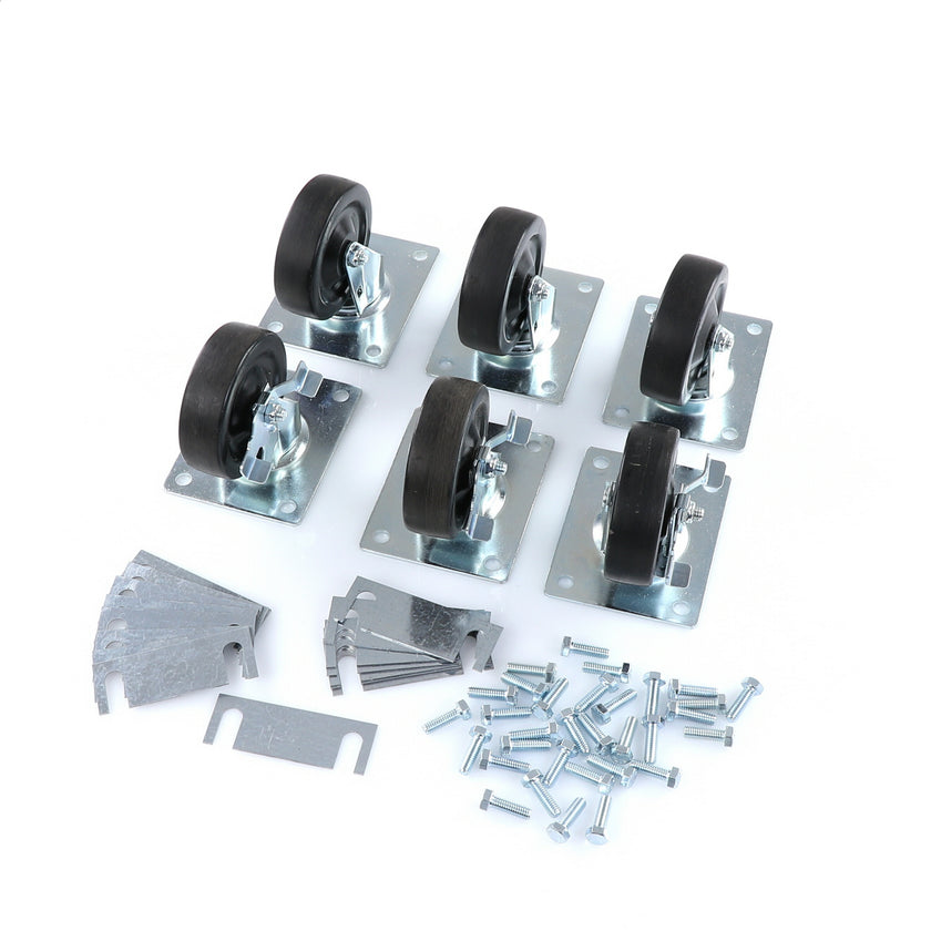 CASTOR KIT SET OF 6-5" INCLUDES ONE SET OF 808946 AND ONE SET OF 808947INCLUDES 3)226567 CASTOR, 3)226566 CASTOR, 12)226574 SHIM, 24)830539 SCREWS AND TWO CARTONS.