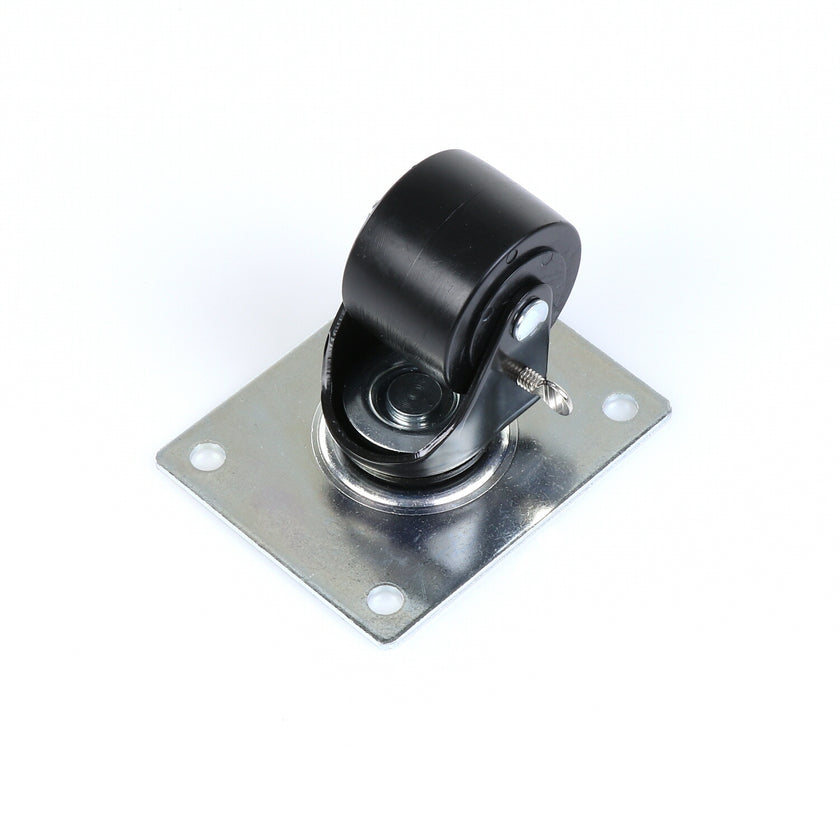 CASTOR 2-1/2" SWIVEL W/O BRAKE BLK FRAM TOP PLATE 4" X 5-1/8" RAISES CABINET APPROXIMATELY 3-1/2"
