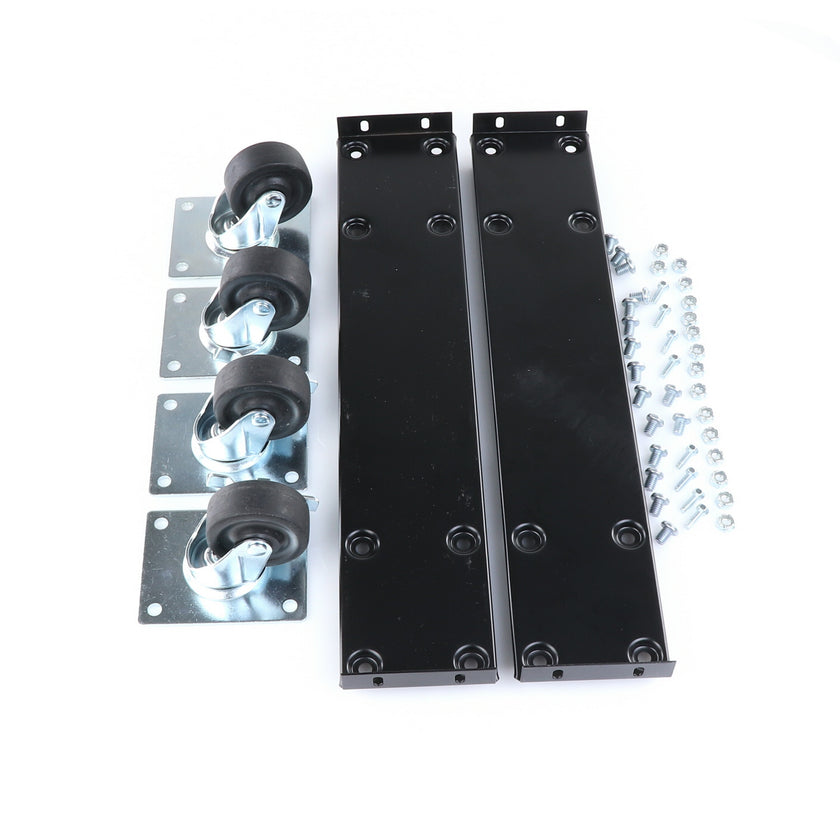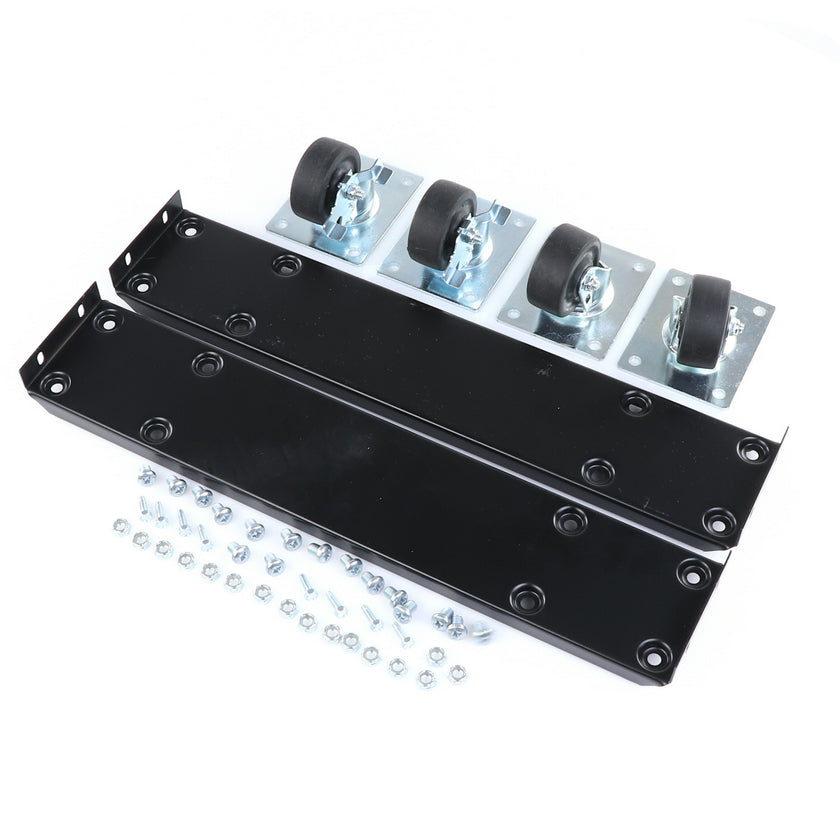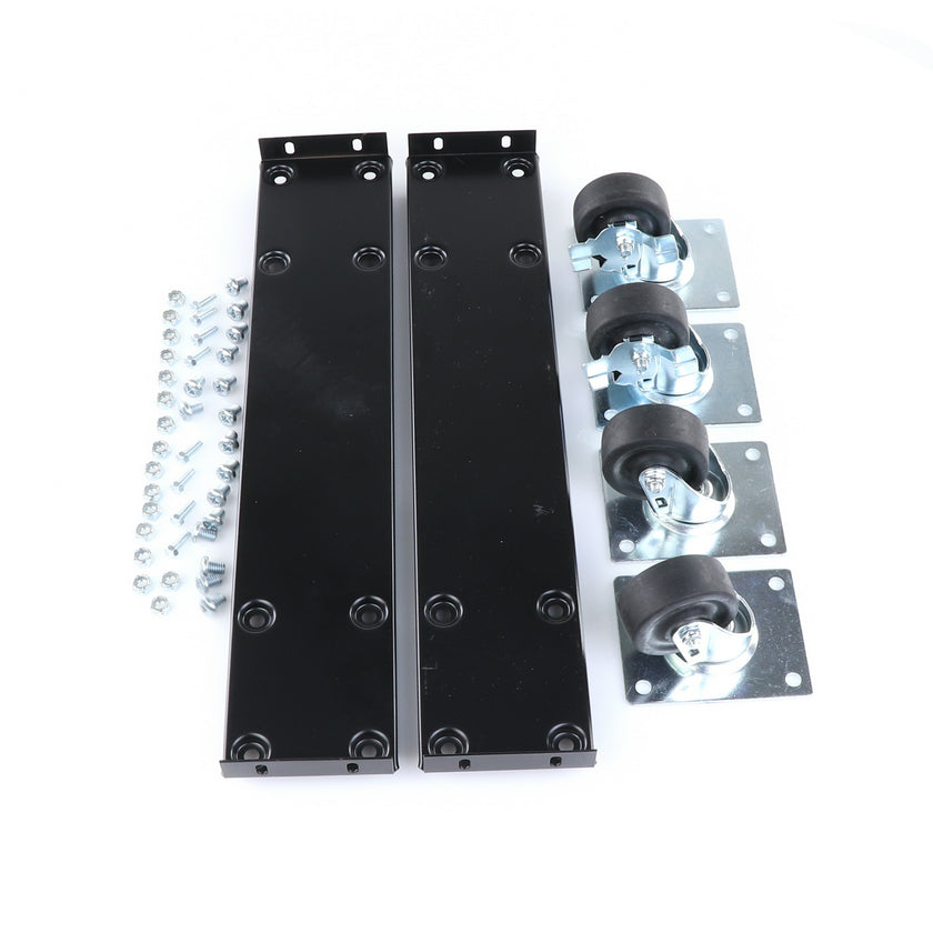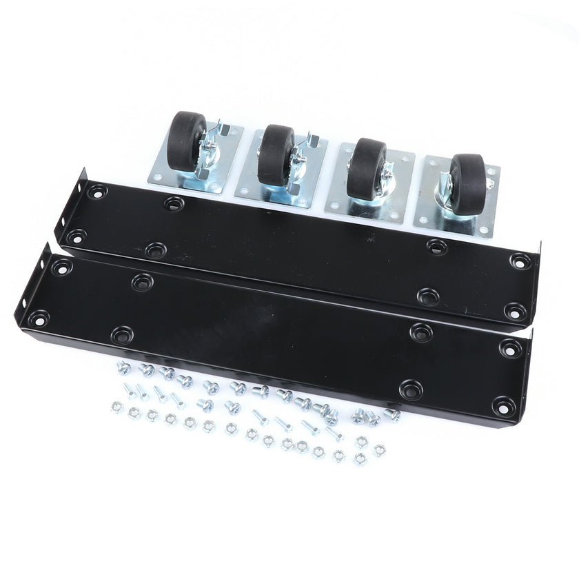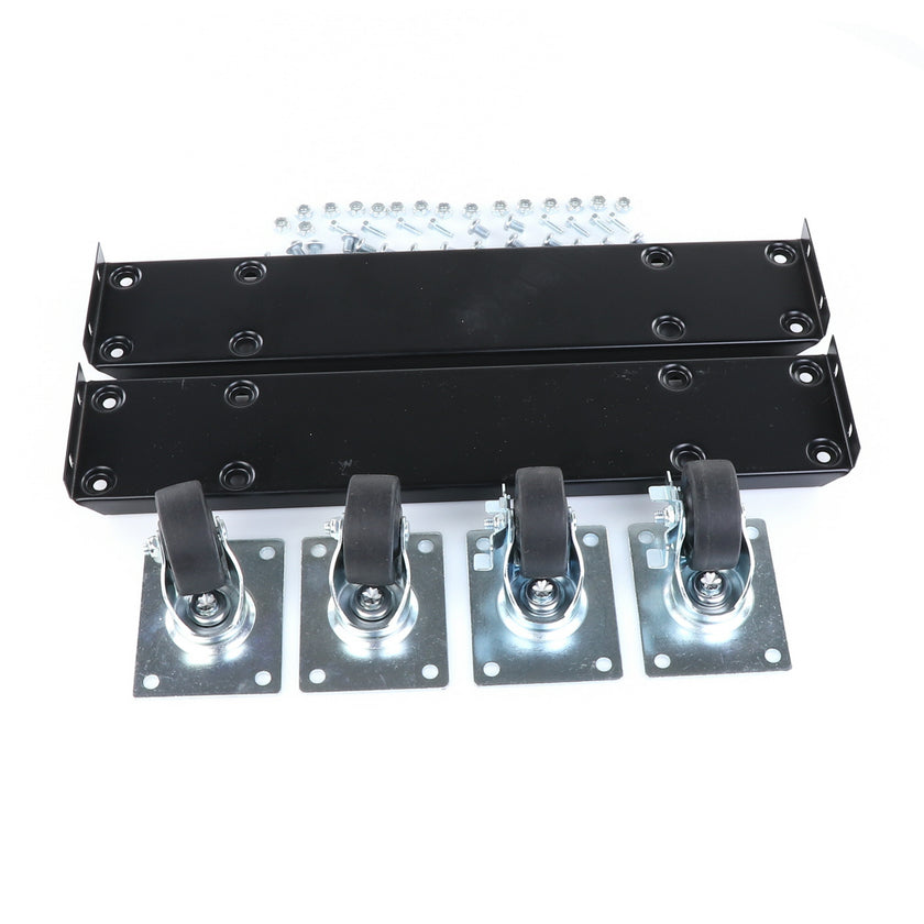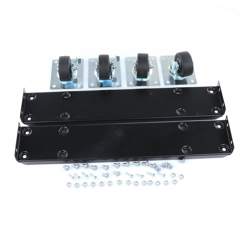 CASTOR KIT 2-1/2" 20" FRAME SET/4 BLK INCLUDES: 2)935849 FRAMES, 2)830274 CASTORS W/ BRAKE, 2)830273 CASTORS W/O BRAKE, 16)934372 BOLTS, 16)934373 NUTS, 8)830535 MOUNTING SCREWS RAISES CABINET APPROXIMATELY 3-3/8"