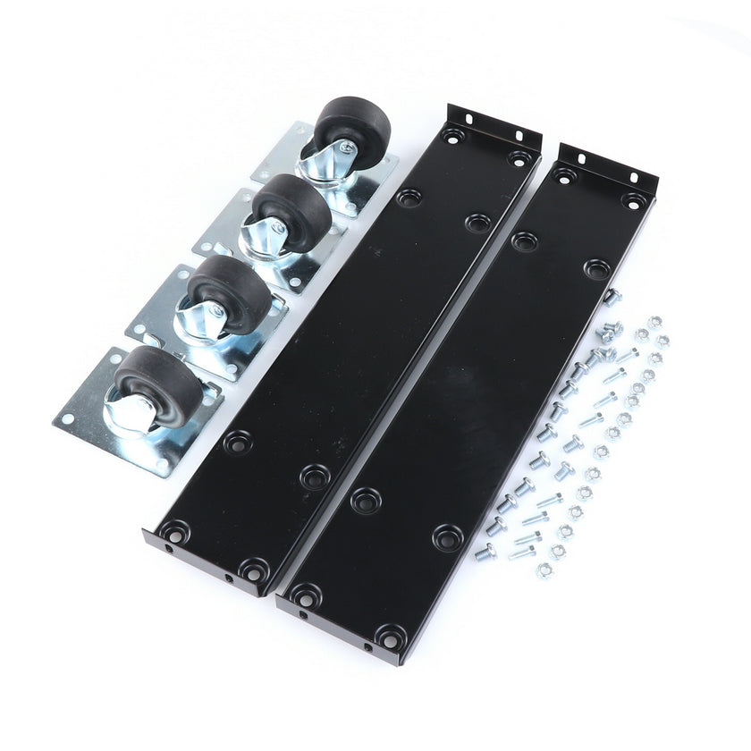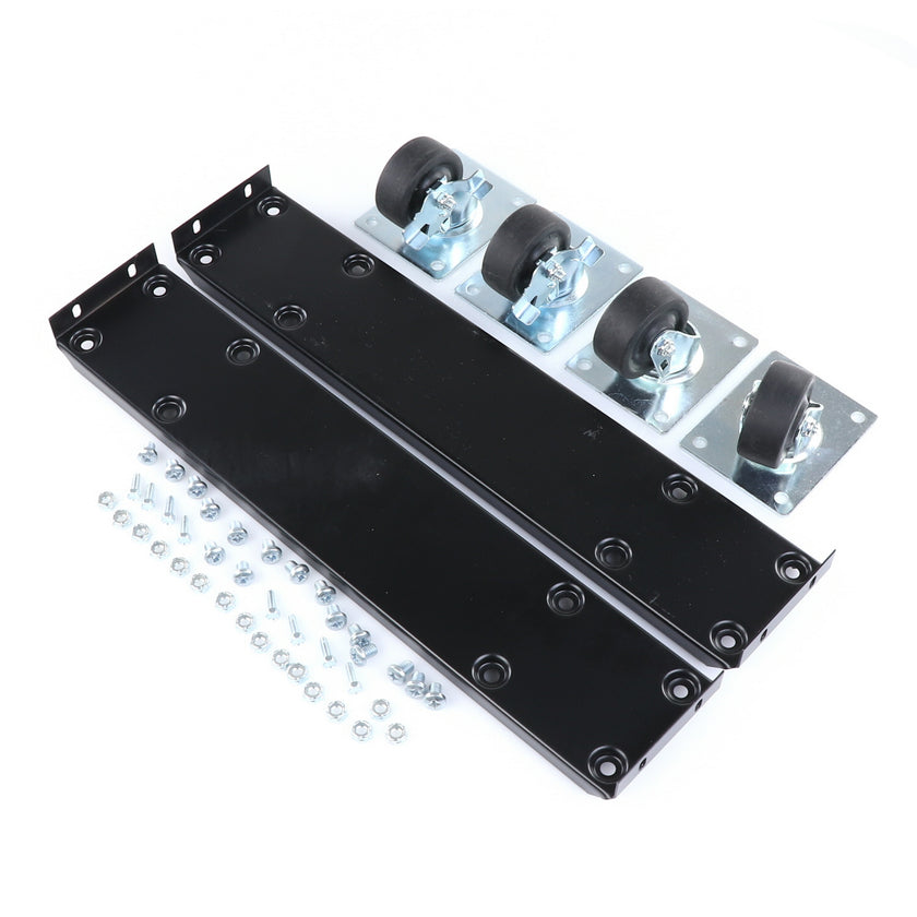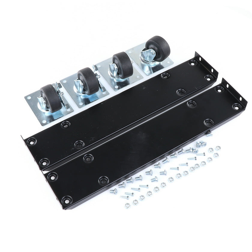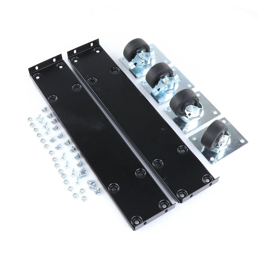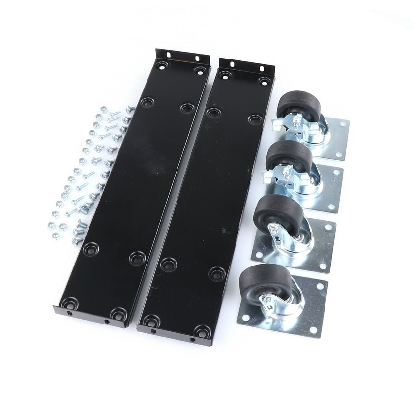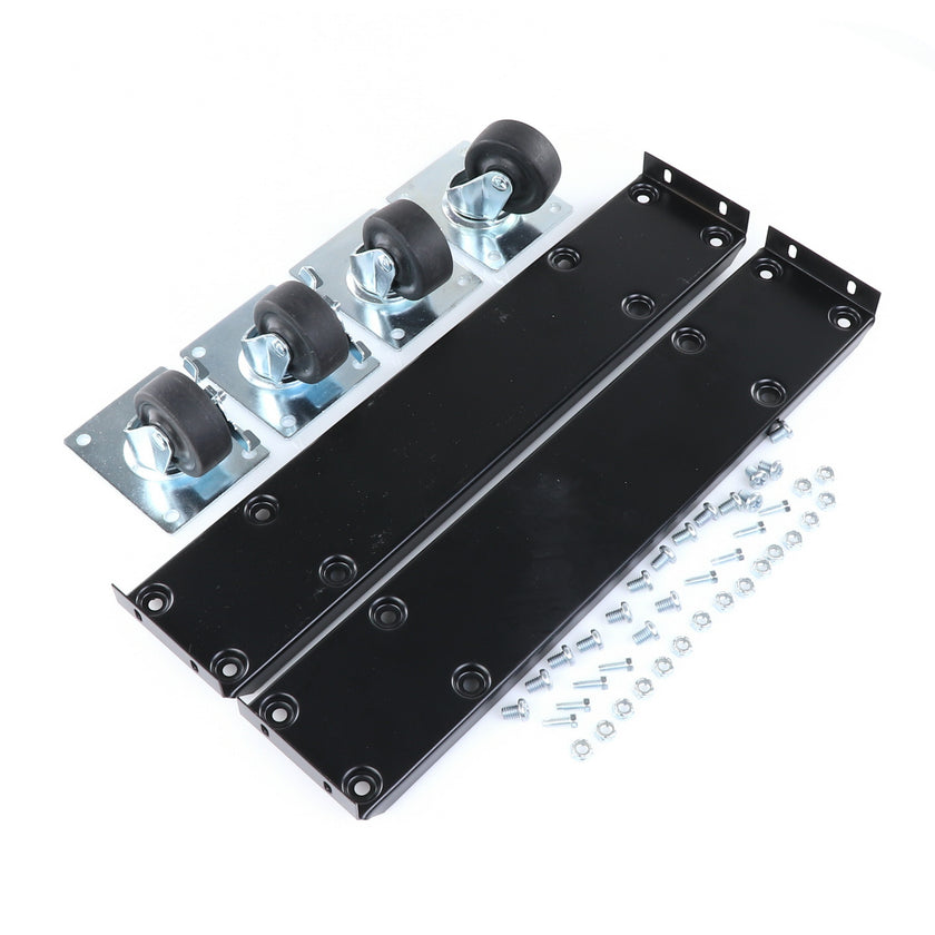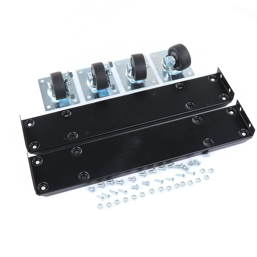 CASTOR KIT 2-1/2" 20" FRAME SET/4 BLK INCLUDES: 2)935849 FRAMES, 2)830274 CASTORS W/ BRAKE, 2)830273 CASTORS W/O BRAKE, 16)934372 BOLTS, 16)934373 NUTS, 8)830535 MOUNTING SCREWS RAISES CABINET APPROXIMATELY 3-3/8"