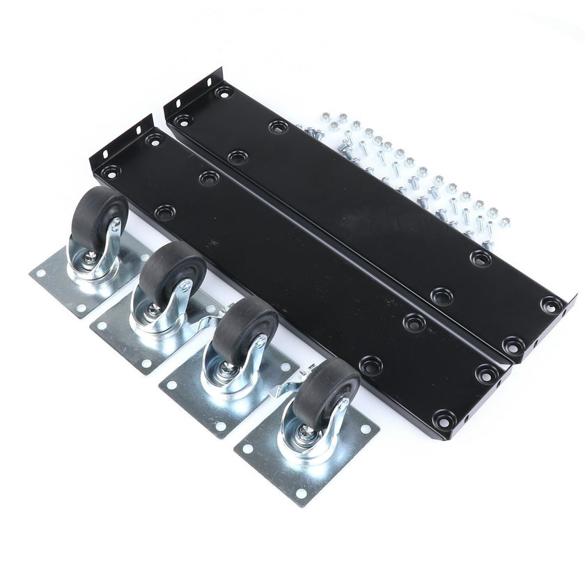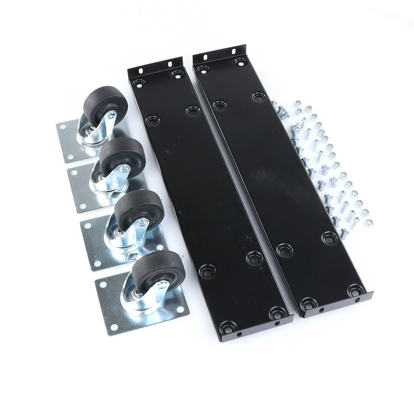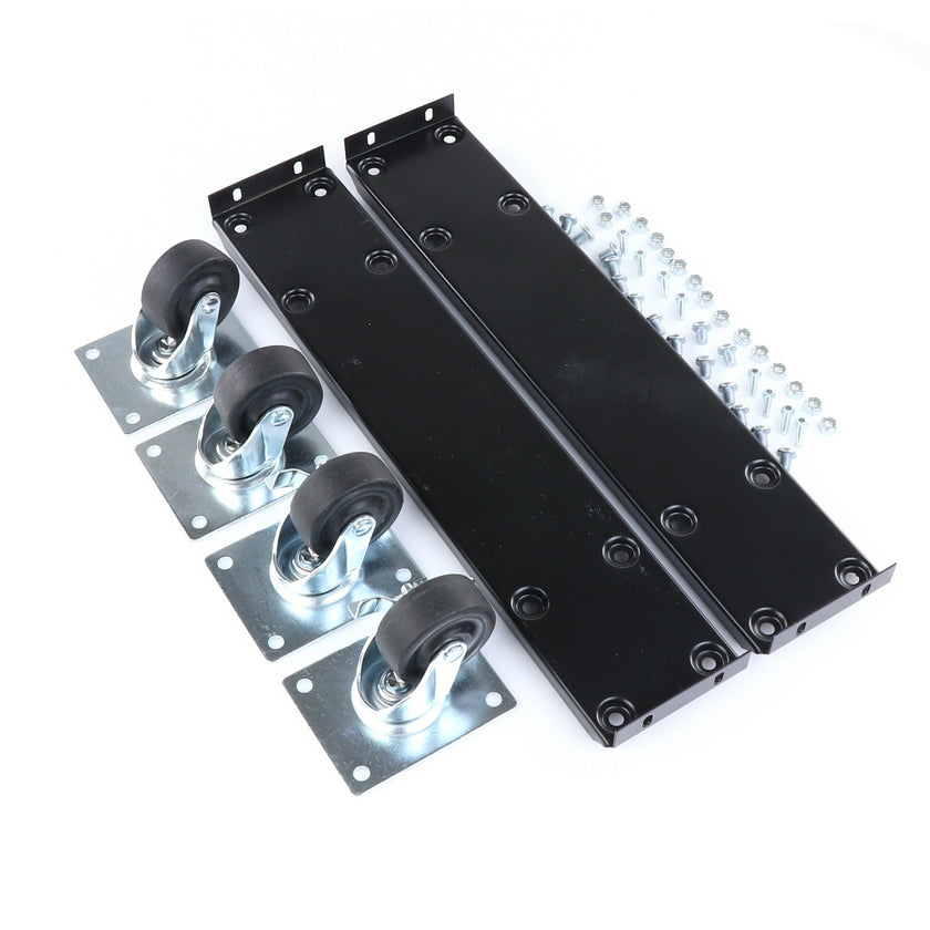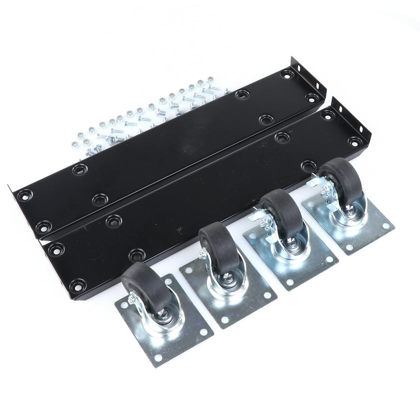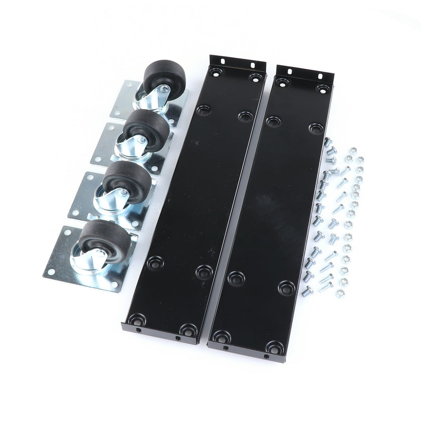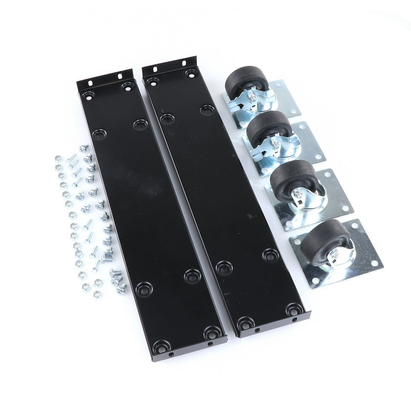 CASTOR KIT 2-1/2" 20" FRAME SET/4 BLK INCLUDES: 2)935849 FRAMES, 2)830274 CASTORS W/ BRAKE, 2)830273 CASTORS W/O BRAKE, 16)934372 BOLTS, 16)934373 NUTS, 8)830535 MOUNTING SCREWS RAISES CABINET APPROXIMATELY 3-3/8"