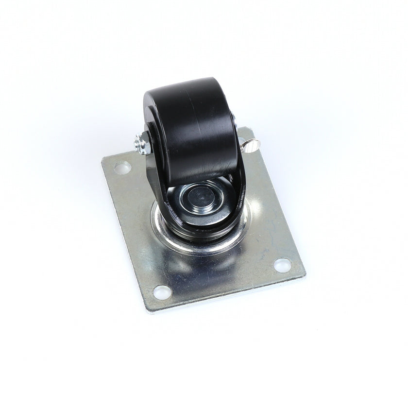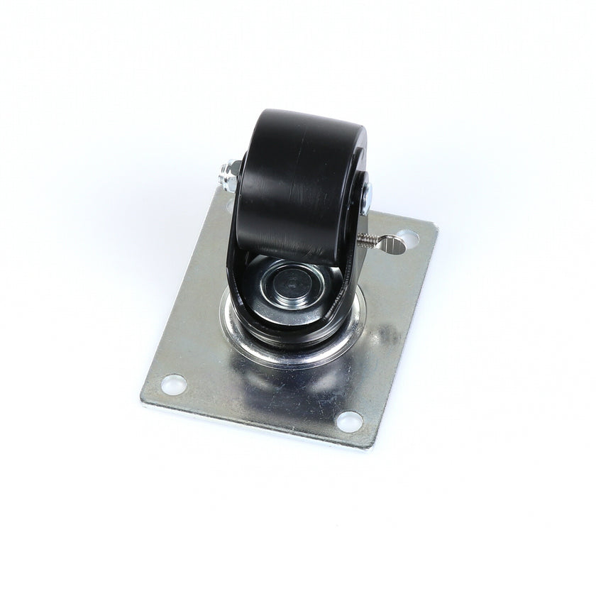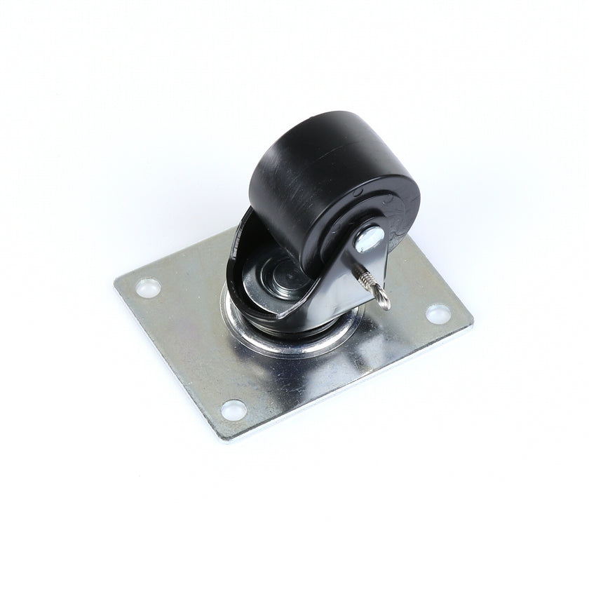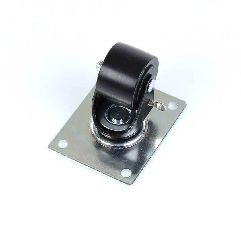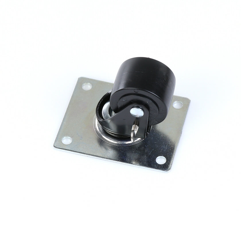 CASTOR 2-1/2" SWIVEL W/ BRAKE BLK FRAM TOP PLATE 4" X 5-1/8" RAISES CABINET APPROXIMATELY 3-1/2"