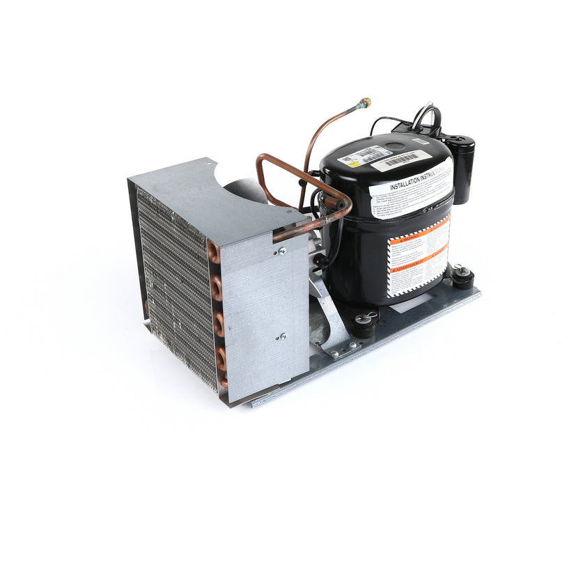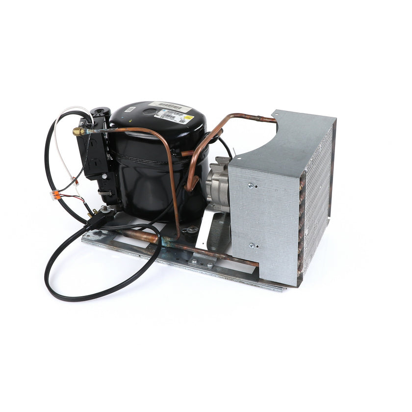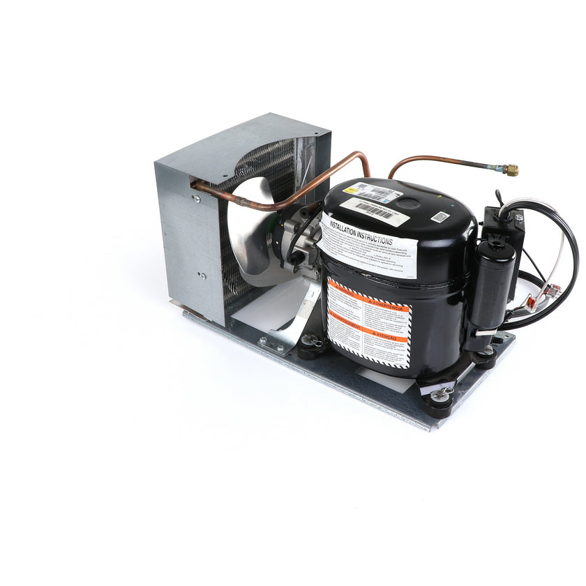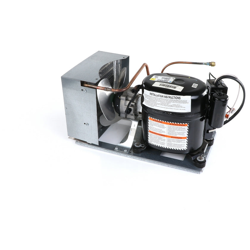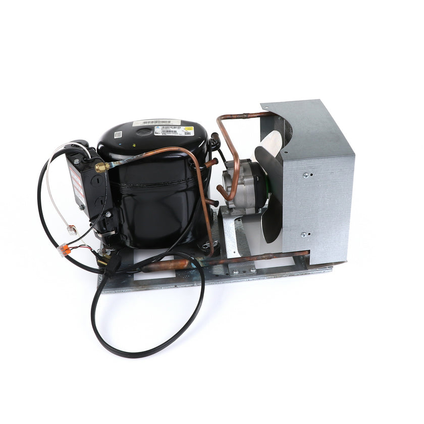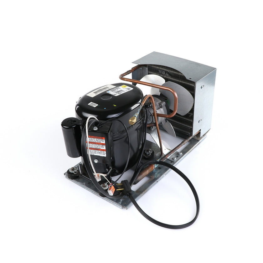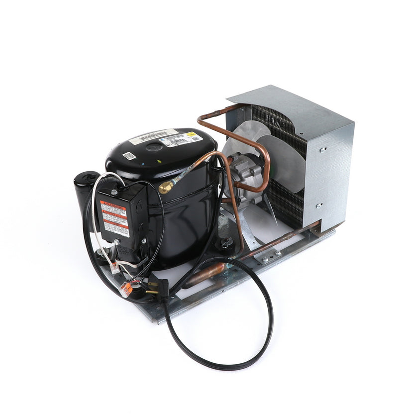 UNIT 1/3 134 AE630ET TSSU-48 INCLUDES: COMPRESSOR WITH RUBBER MOUNTING BLOCKS, RELAY, OVERLOAD, START CAPACITOR, FAN MOTOR, FAN BLADE, DRIER, CONDENSING COIL, SHROUD, DRIER, POWER CORD ALL MOUNTED TO BASE.