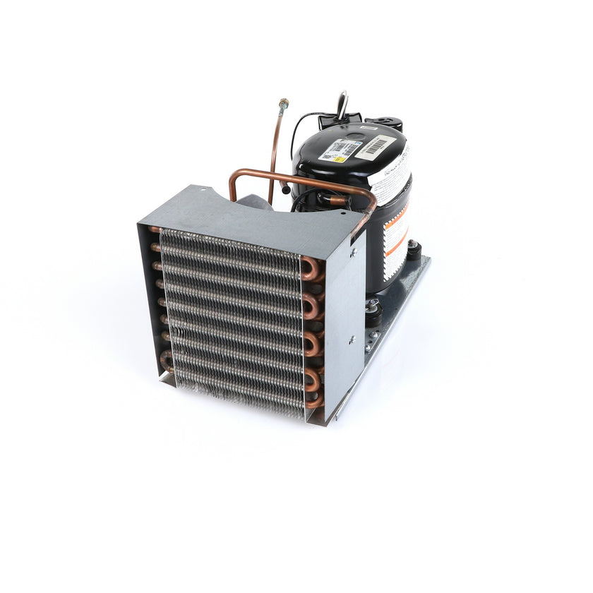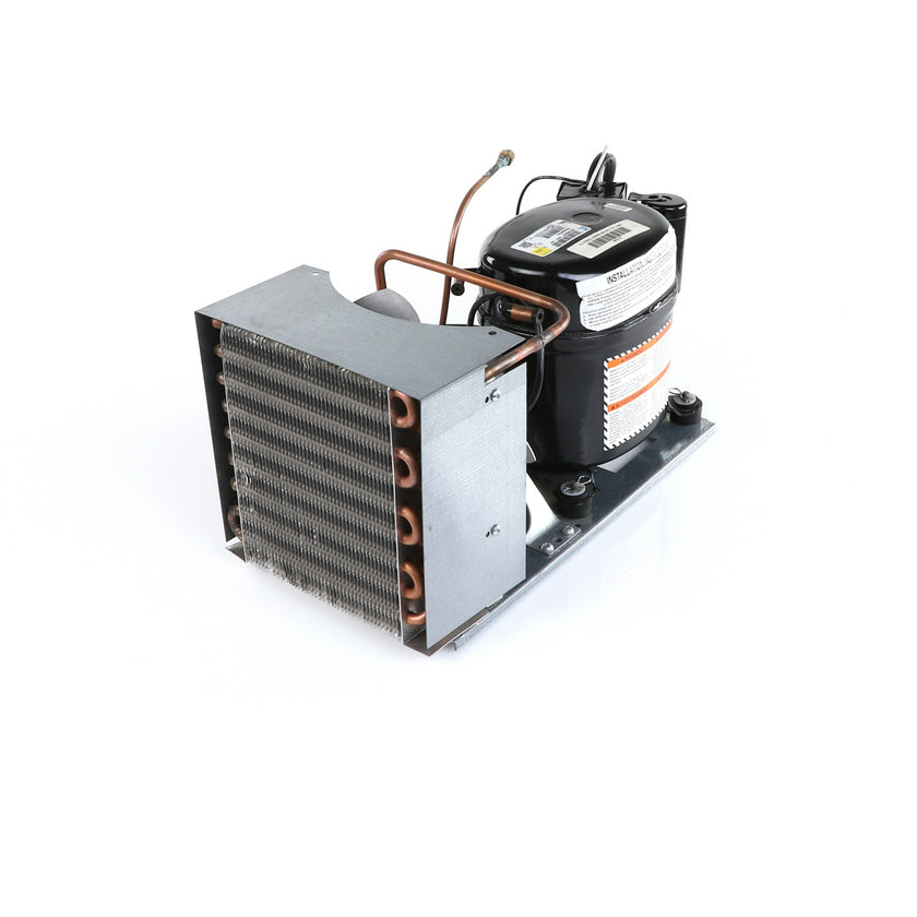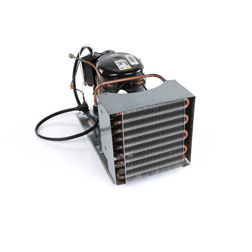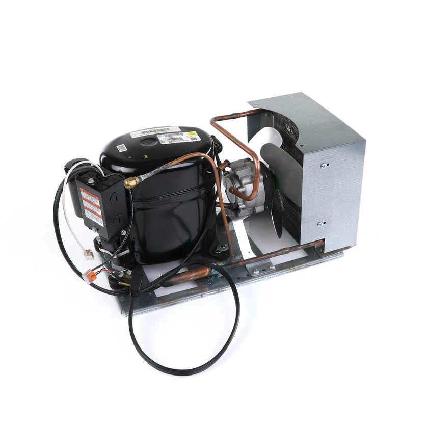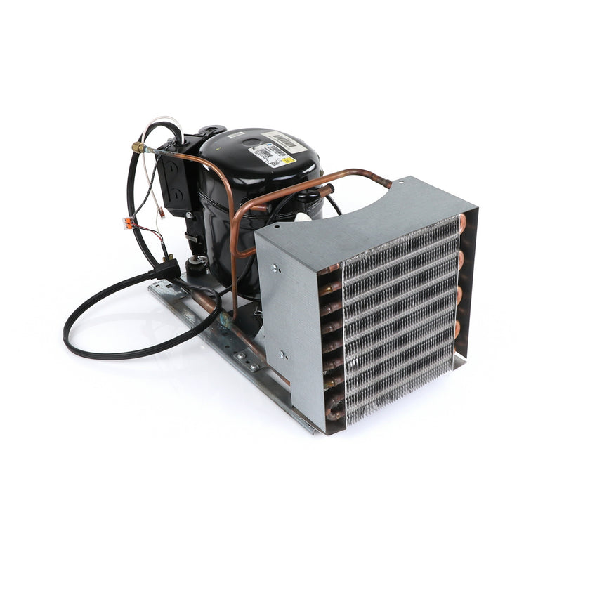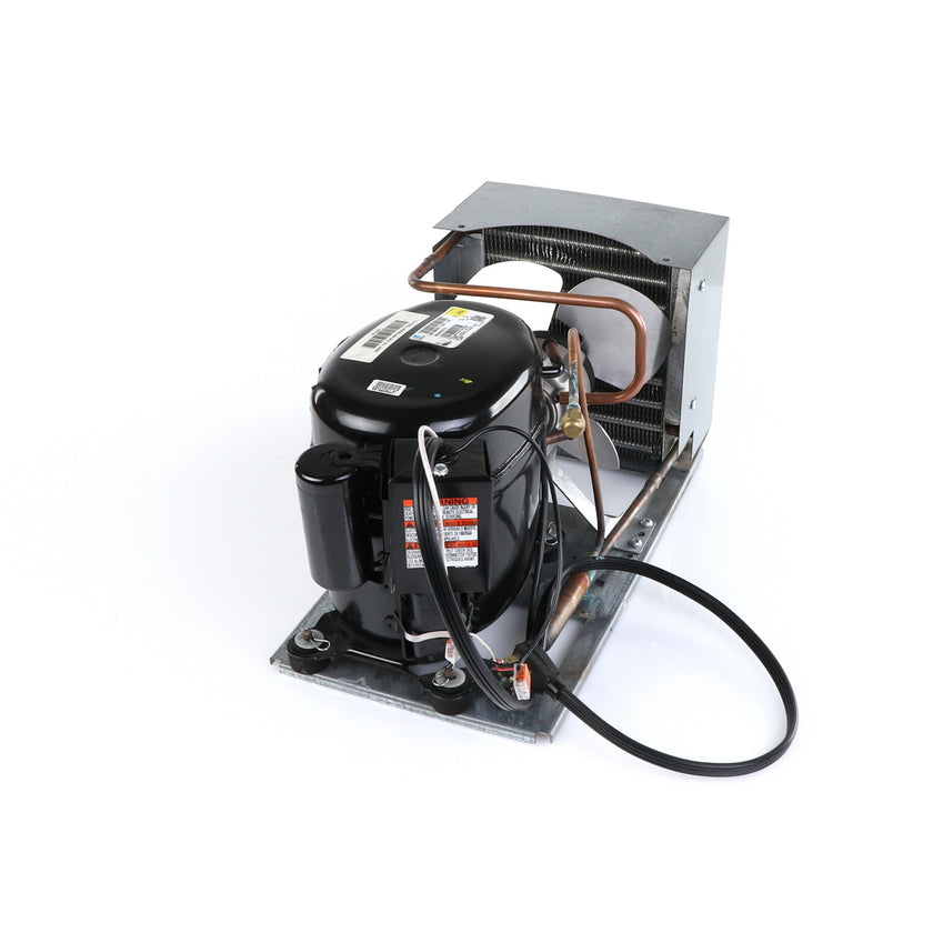UNIT 1/3 134 AE630ET TSSU-48 INCLUDES: COMPRESSOR WITH RUBBER MOUNTING BLOCKS, RELAY, OVERLOAD, START CAPACITOR, FAN MOTOR, FAN BLADE, DRIER, CONDENSING COIL, SHROUD, DRIER, POWER CORD ALL MOUNTED TO BASE.