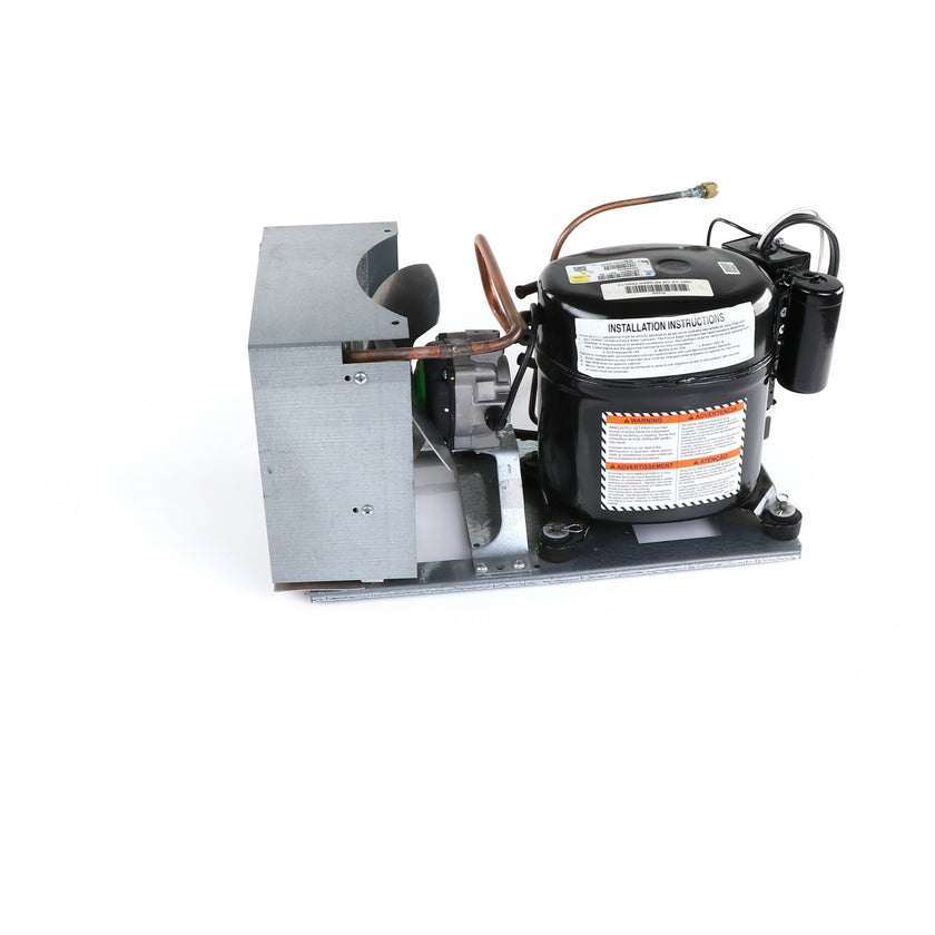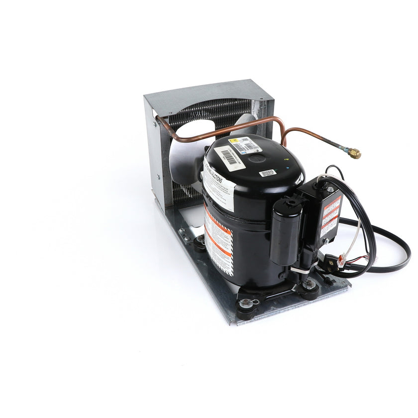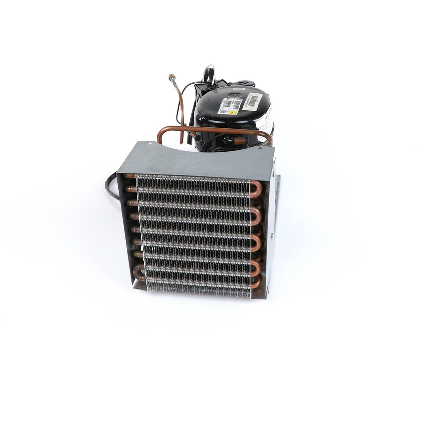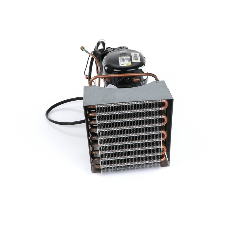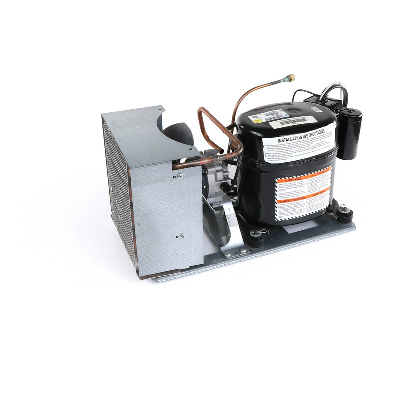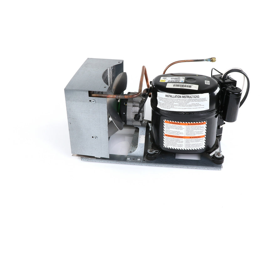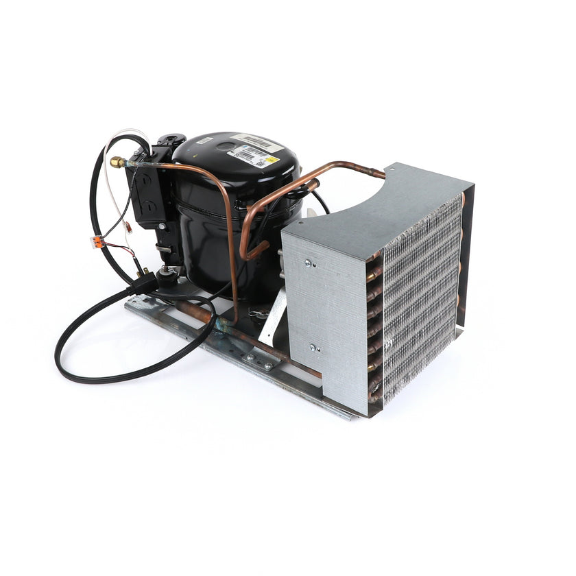 UNIT 1/3 134 AE630ET TSSU-48 INCLUDES: COMPRESSOR WITH RUBBER MOUNTING BLOCKS, RELAY, OVERLOAD, START CAPACITOR, FAN MOTOR, FAN BLADE, DRIER, CONDENSING COIL, SHROUD, DRIER, POWER CORD ALL MOUNTED TO BASE.