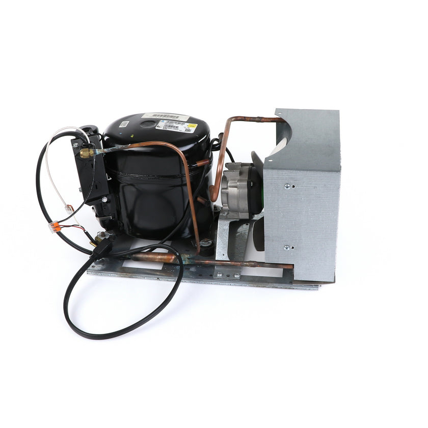 UNIT 1/5 134 AE530AR/AT TSSU27 INCLUDES: 933900 COMPRESSOR WITH RUBBER MOUNTING BLOCKS, 802211 RELAY, 800192 OVERLOAD, 801236 START CAPACITOR, 816687 (WAS 800417 FAN MOTOR), 801005 FAN BLADE, 865416 MOTOR BRACKET, 800801 DRIER, 800228 CONDENSING COIL, 801506 SHROUD, 801704 POWER CORD ALL MOUNTED TO 861752 BASE.