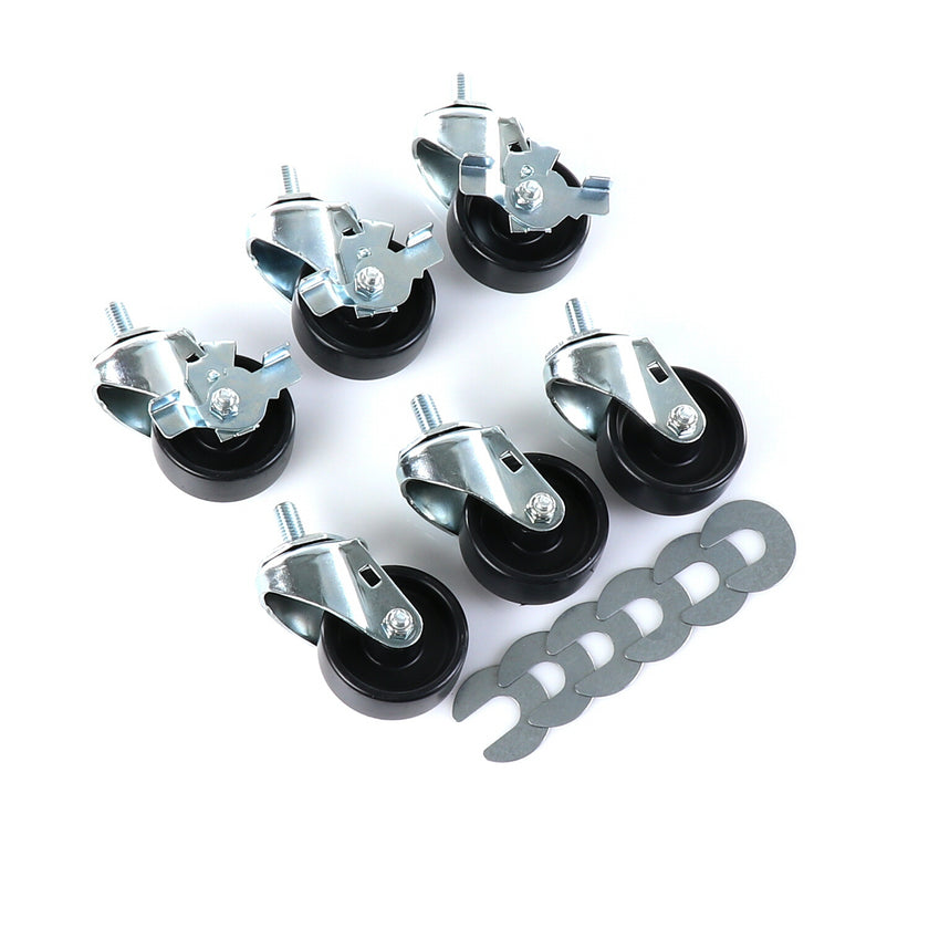 CASTOR, SET/6, 3", KIT, 1/2" STEM