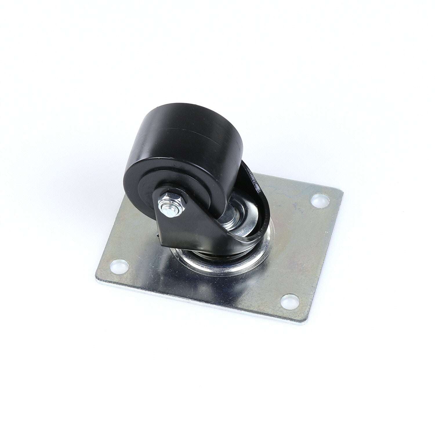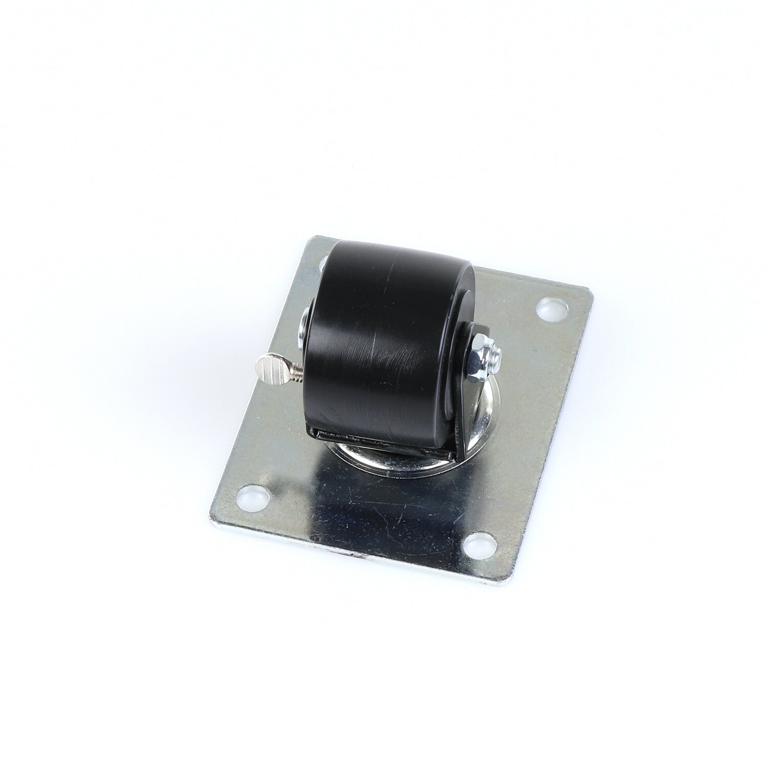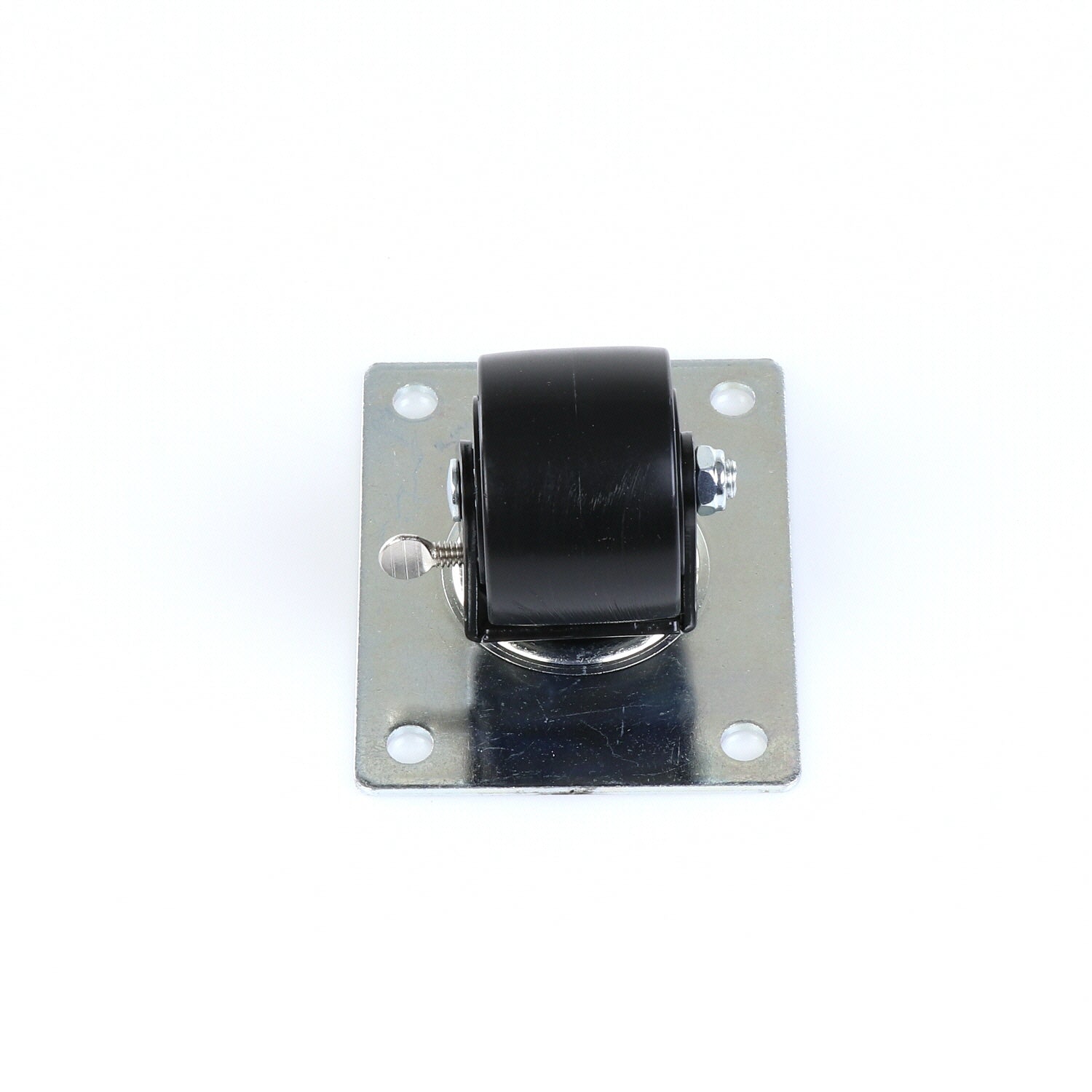 CASTOR 2-1/2" SWIVEL W/ BRAKE BLK FRAM TOP PLATE 4" X 5-1/8" RAISES CABINET APPROXIMATELY 3-1/2"