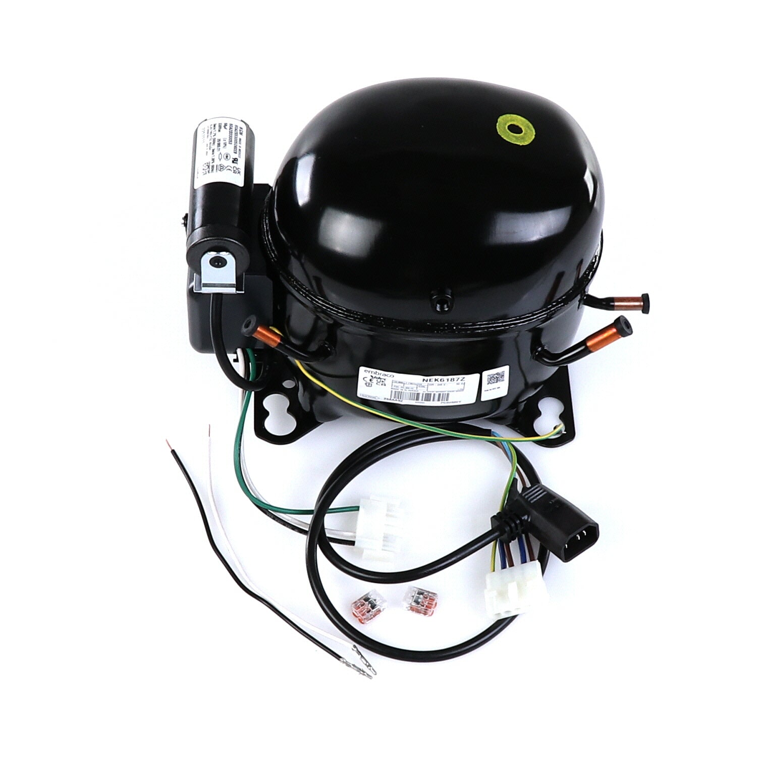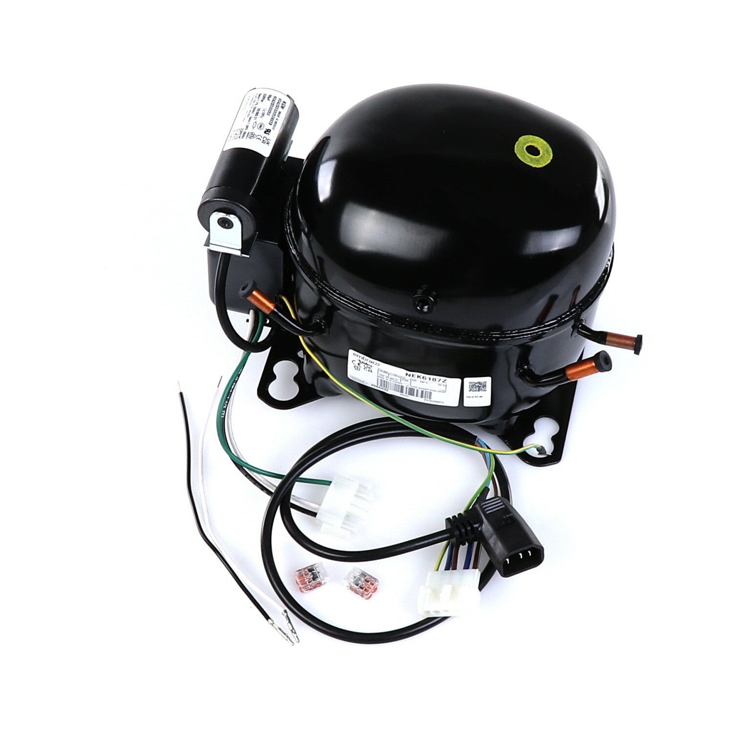 COMPRESSOR KIT W/909530 NEK6187Z 220V INCLUDES: 1) COMPRESSOR 909530, 2) CONNECTORS 200962, 1) BLACK WIRE ASM 945290, 1) WHITE WIRE ASM 945291, 1) COMPRESSOR POWER CORD 842220, INSTRUCTIONS 990482**REPLACES THE 842081 (AEA4440YXC (AE630JR)) COMPRESSOR. THE 842081 COMPRESSOR IS NO LONGER AVAILABLE AND IS REPLACED WITH THE 909530 COMPRESSOR ALONG WITH POWER CORD AND WIRE ASSEMBLIES TO CONNECT THE NEW COMPRESSOR.